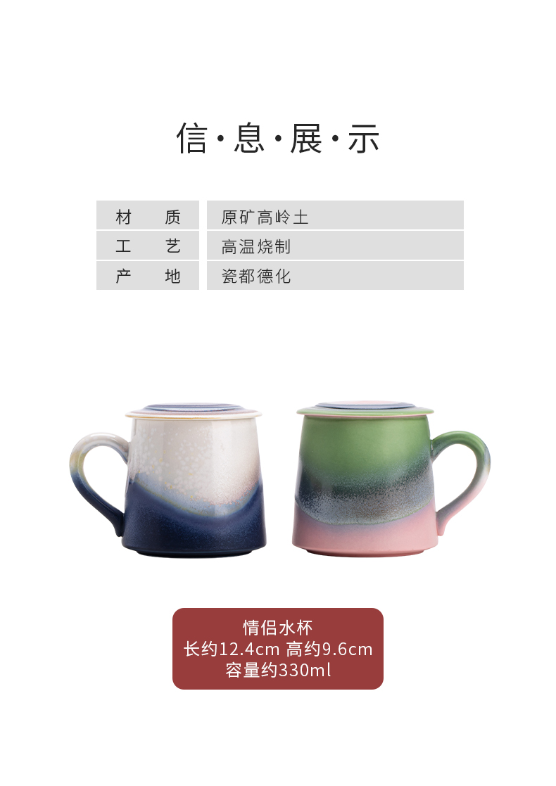 苏氏陶瓷(SUSHI CERAMICS) 相见恨晚情侣马克杯 J1186 办公杯330ml*2 混色(单位:套)