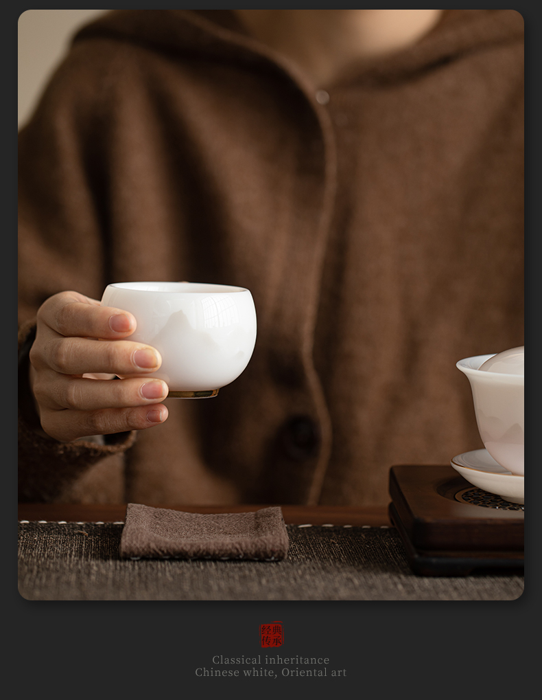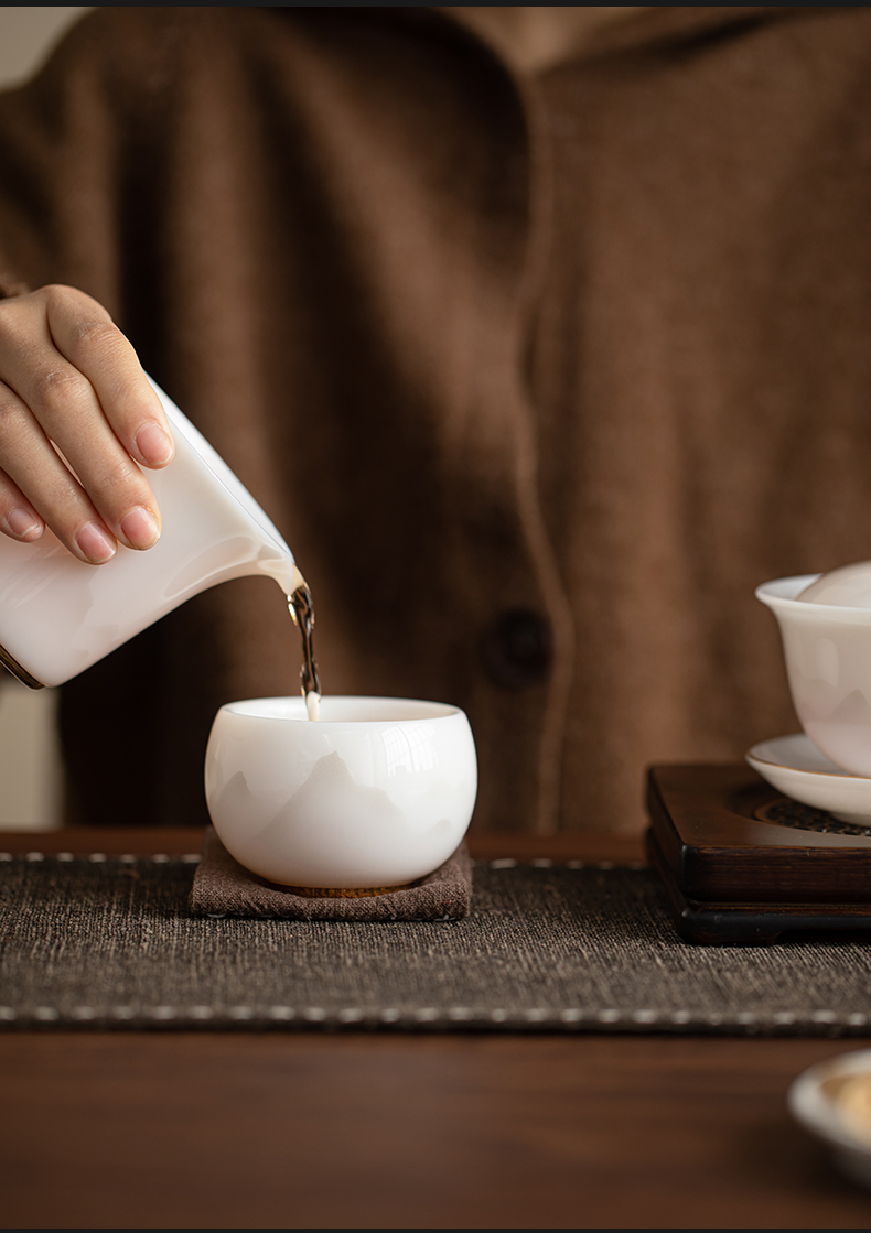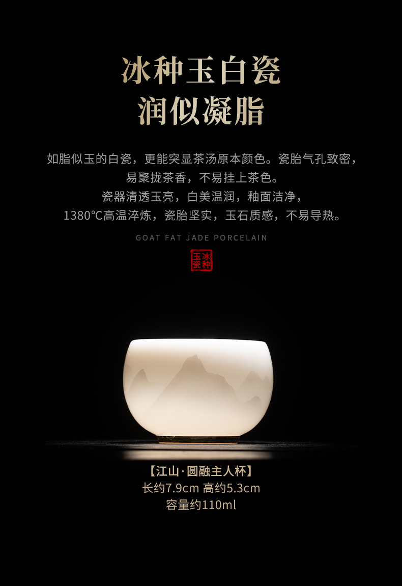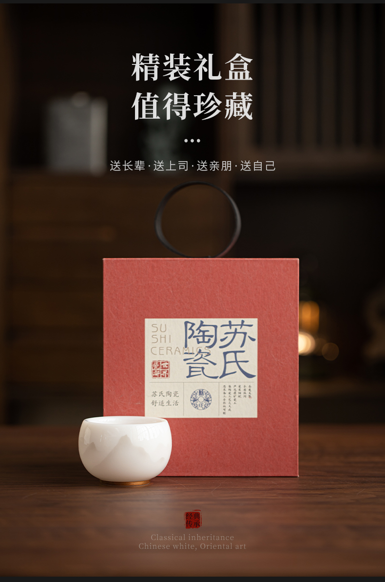 苏氏陶瓷(SUSHI CERAMICS) 冰种淡墨秋山圆融茶杯 J1215 110ml 本白色(单位:个)