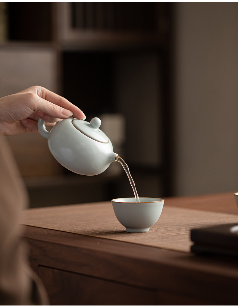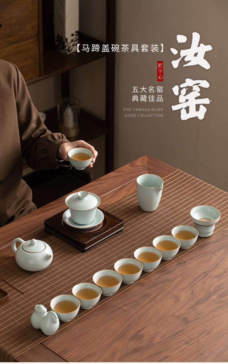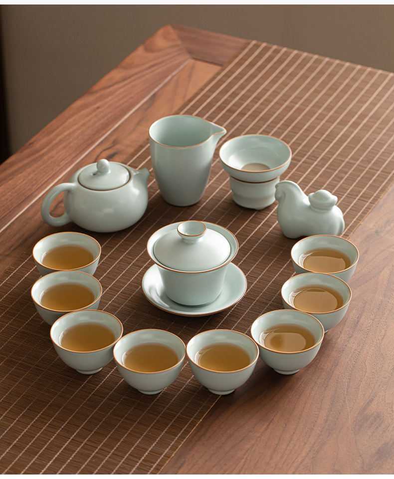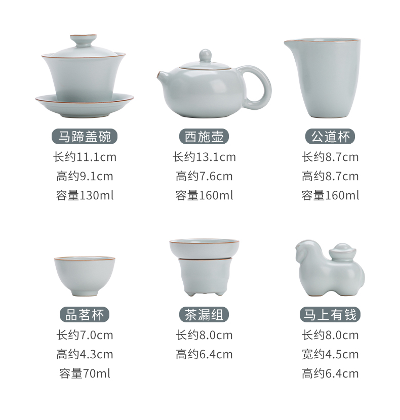 苏氏陶瓷(SUSHI CERAMICS) 马上有钱马蹄盖碗西施壶 J1229 13头 蓝色(单位:套)