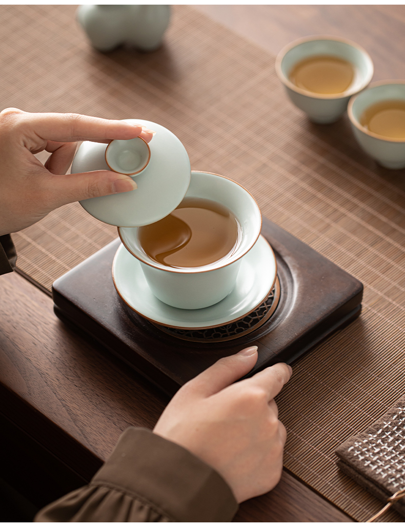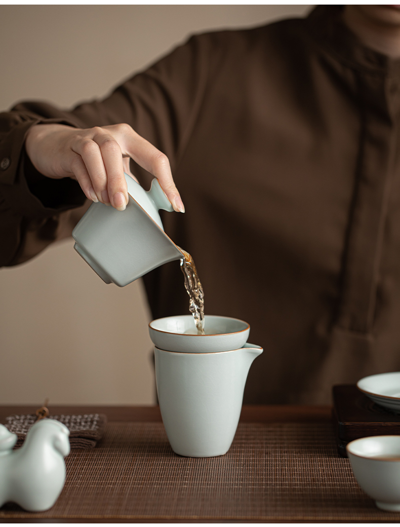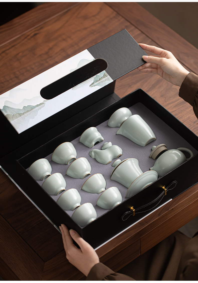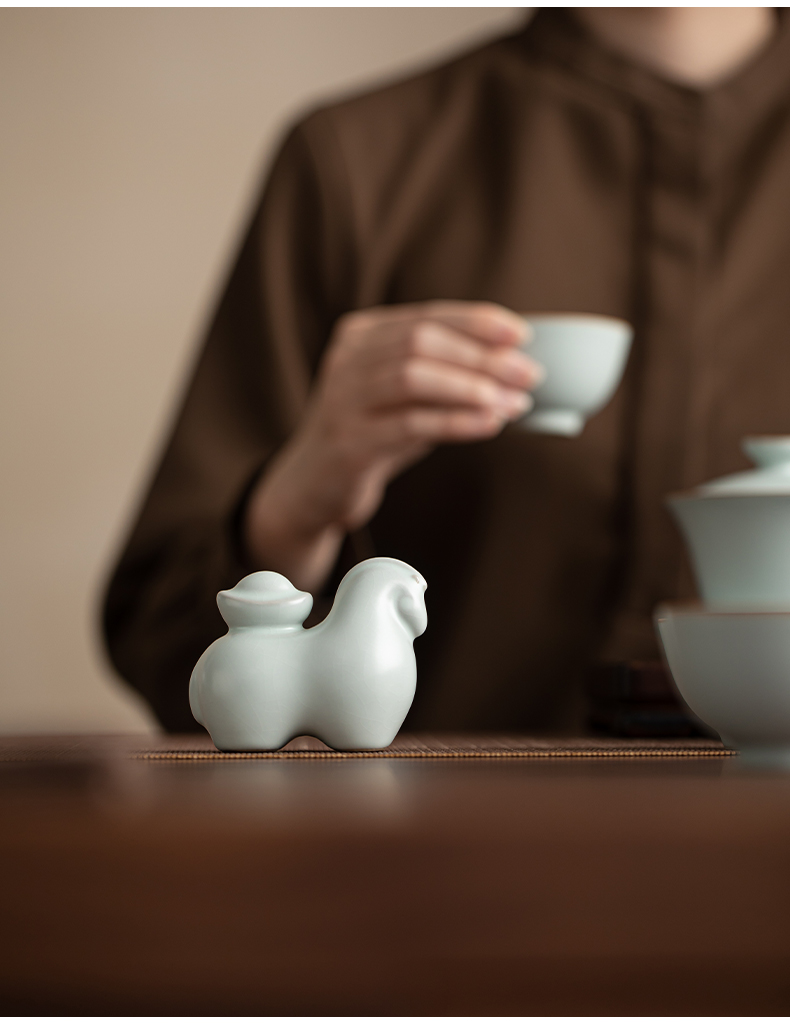 苏氏陶瓷(SUSHI CERAMICS) 马上有钱马蹄盖碗西施壶 J1229 13头 蓝色(单位:套)