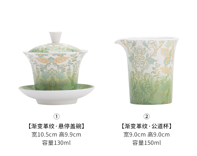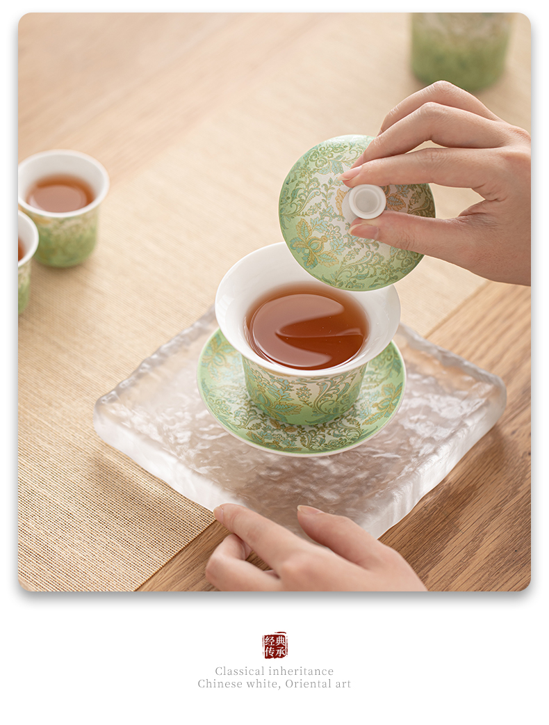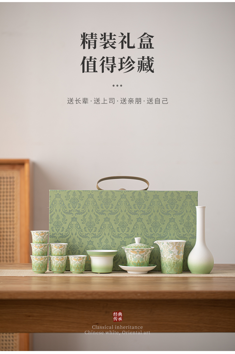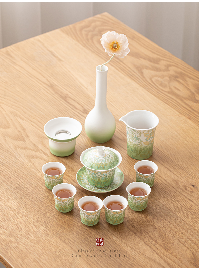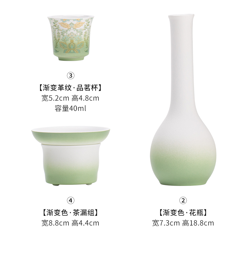 苏氏陶瓷(SUSHI CERAMICS) 文创绿野仙踪盖碗花瓶茶具 J1225 10头 绿色(单位:套)