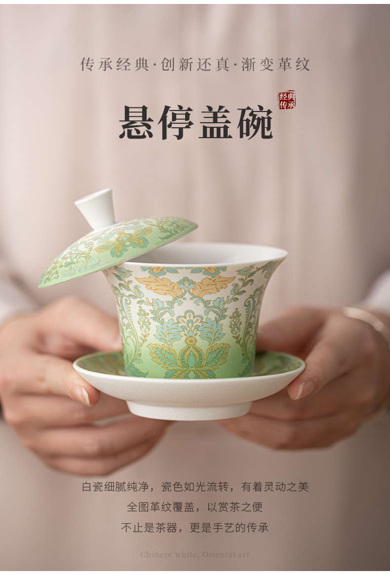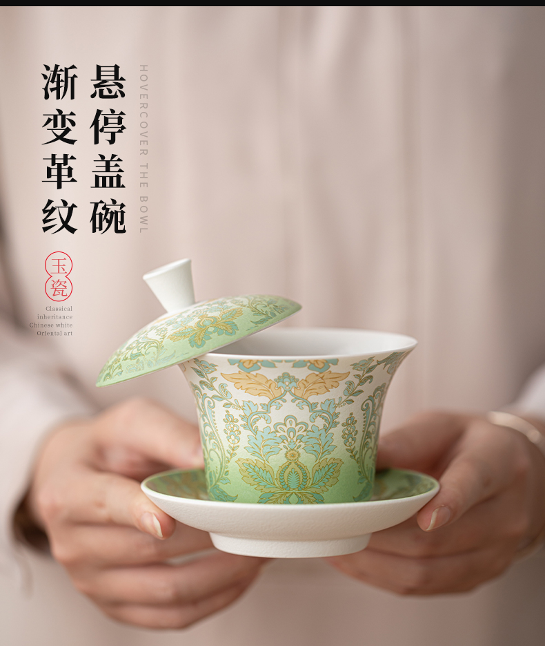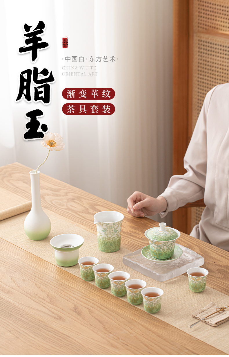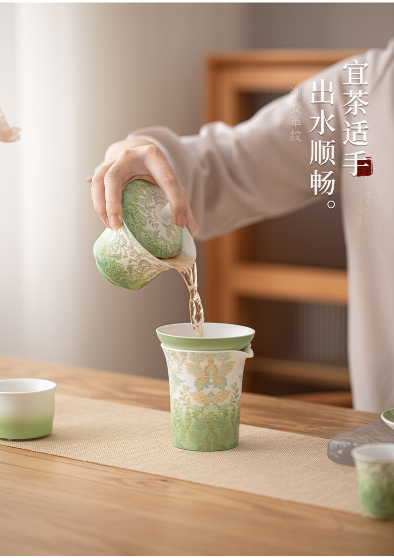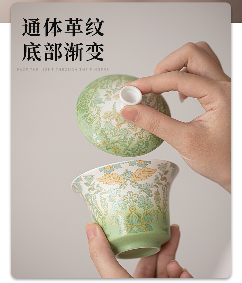 苏氏陶瓷(SUSHI CERAMICS) 文创绿野仙踪盖碗花瓶茶具 J1225 10头 绿色(单位:套)