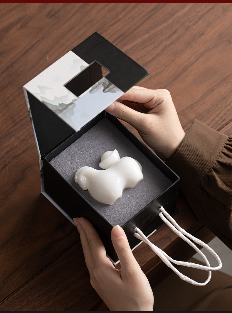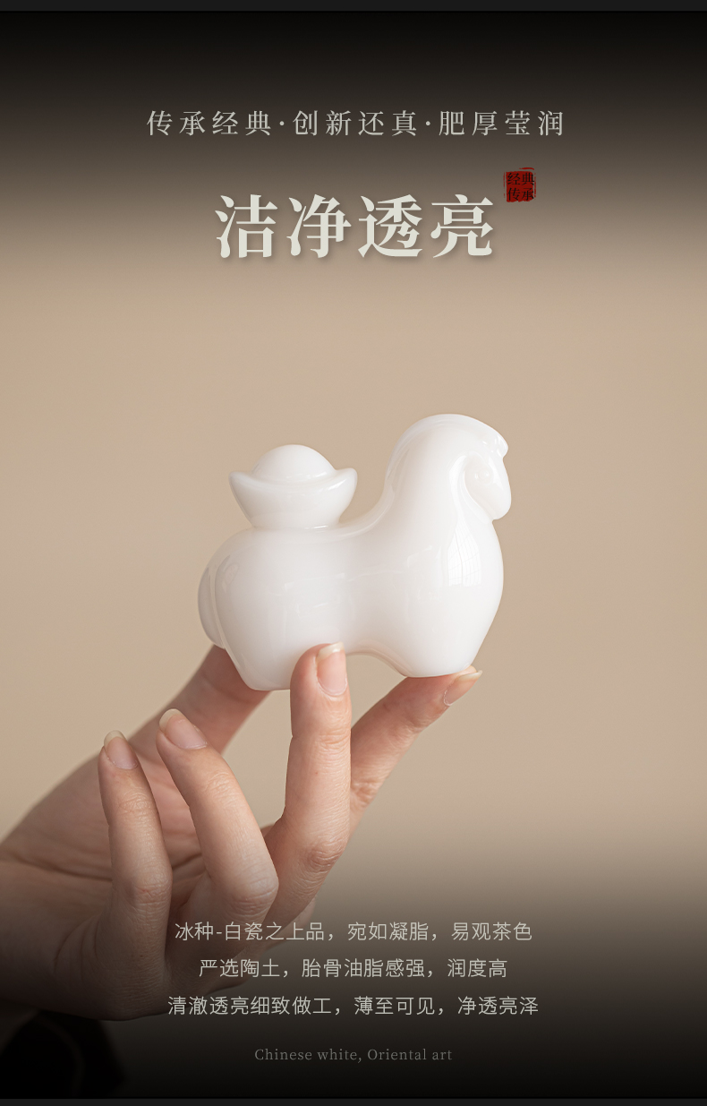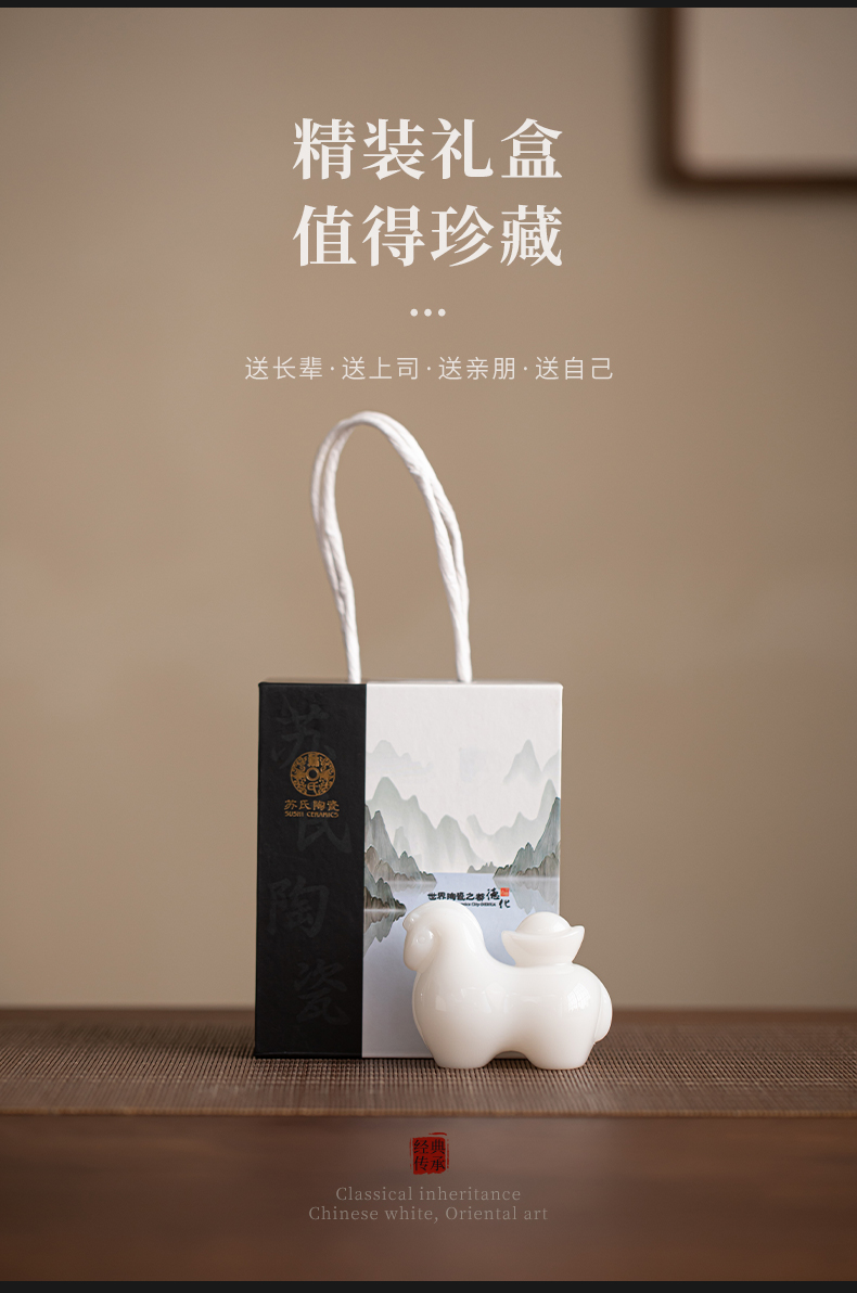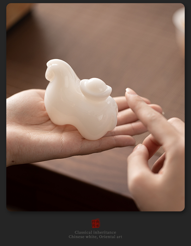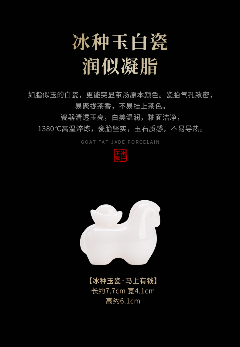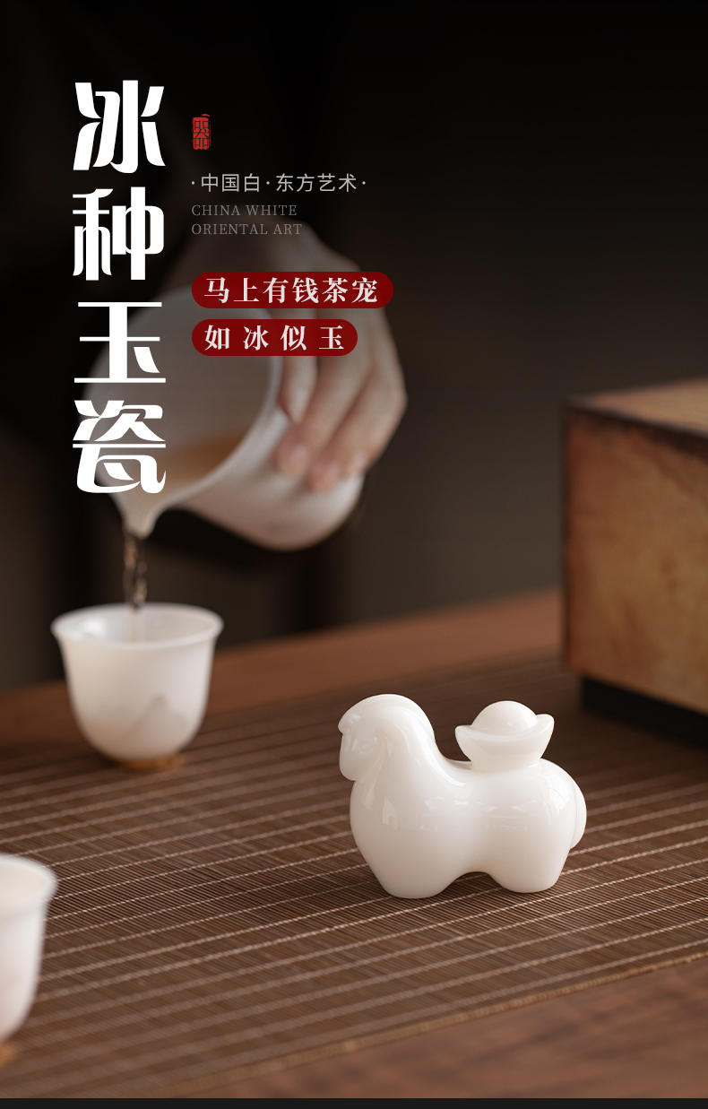 苏氏陶瓷(SUSHI CERAMICS) 冰种马上有钱茶宠摆件 J1231 7.7*4.1*6.1cm 白色(单位:个)