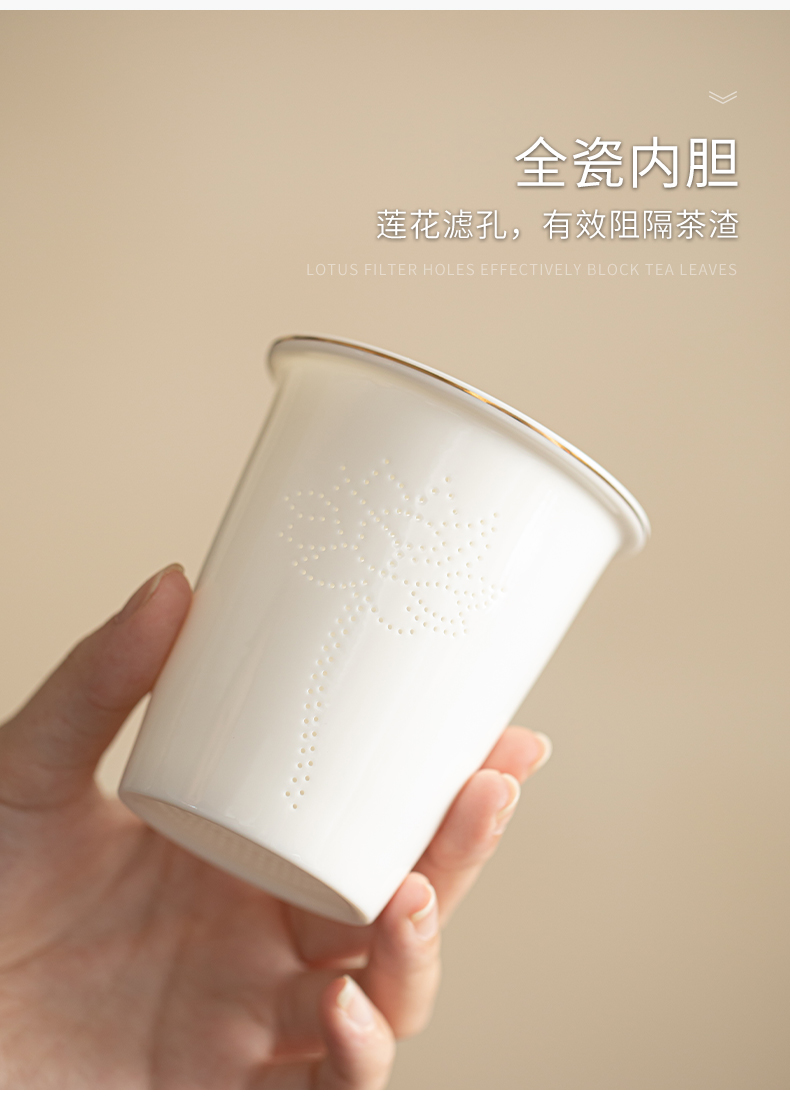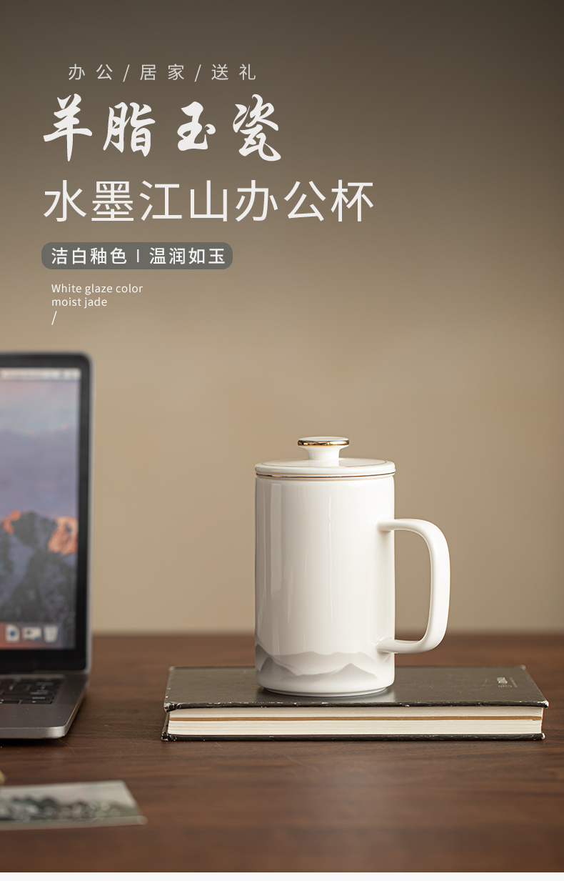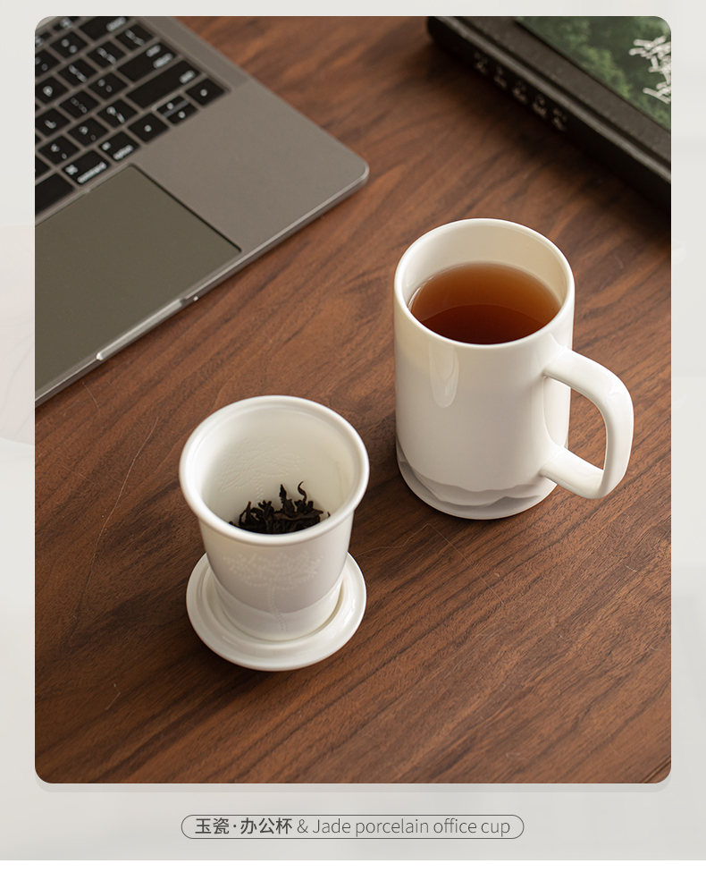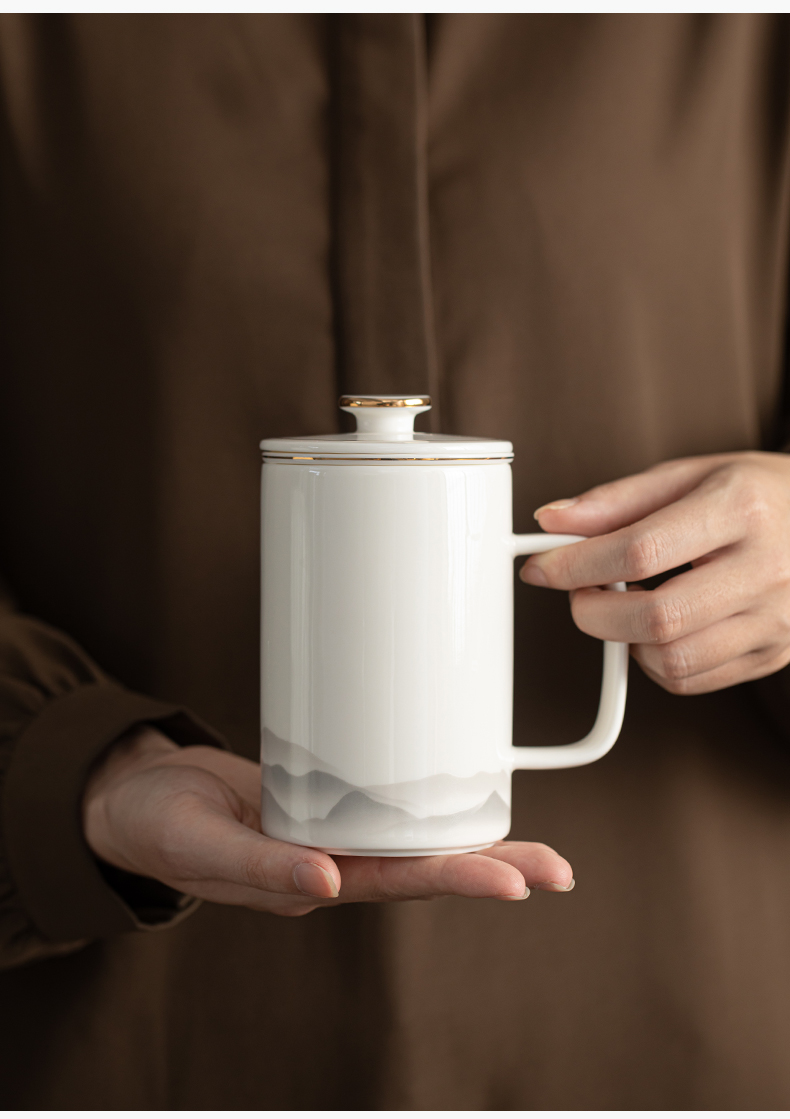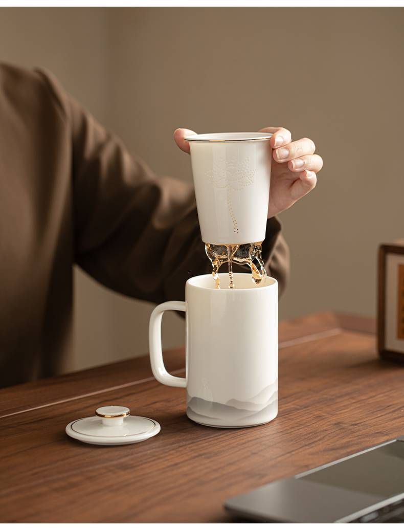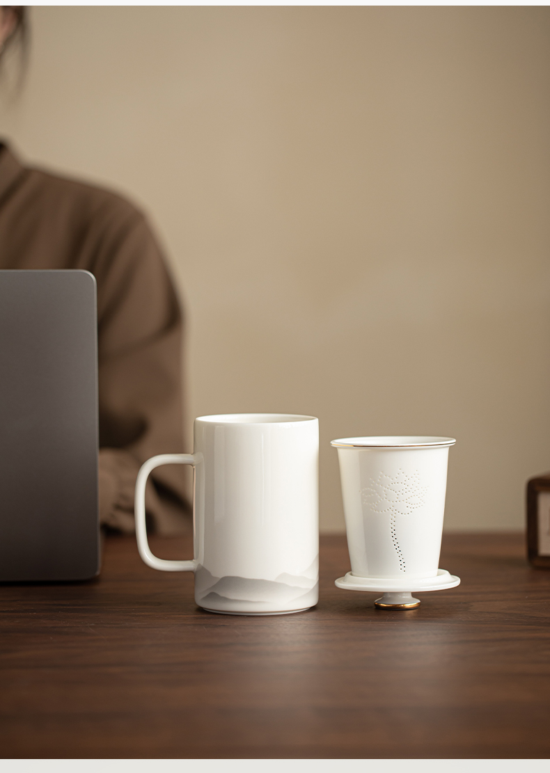 苏氏陶瓷(SUSHI CERAMICS) 江山如画带过滤办公杯 J1265 茶杯380ml 白色(单位:套)