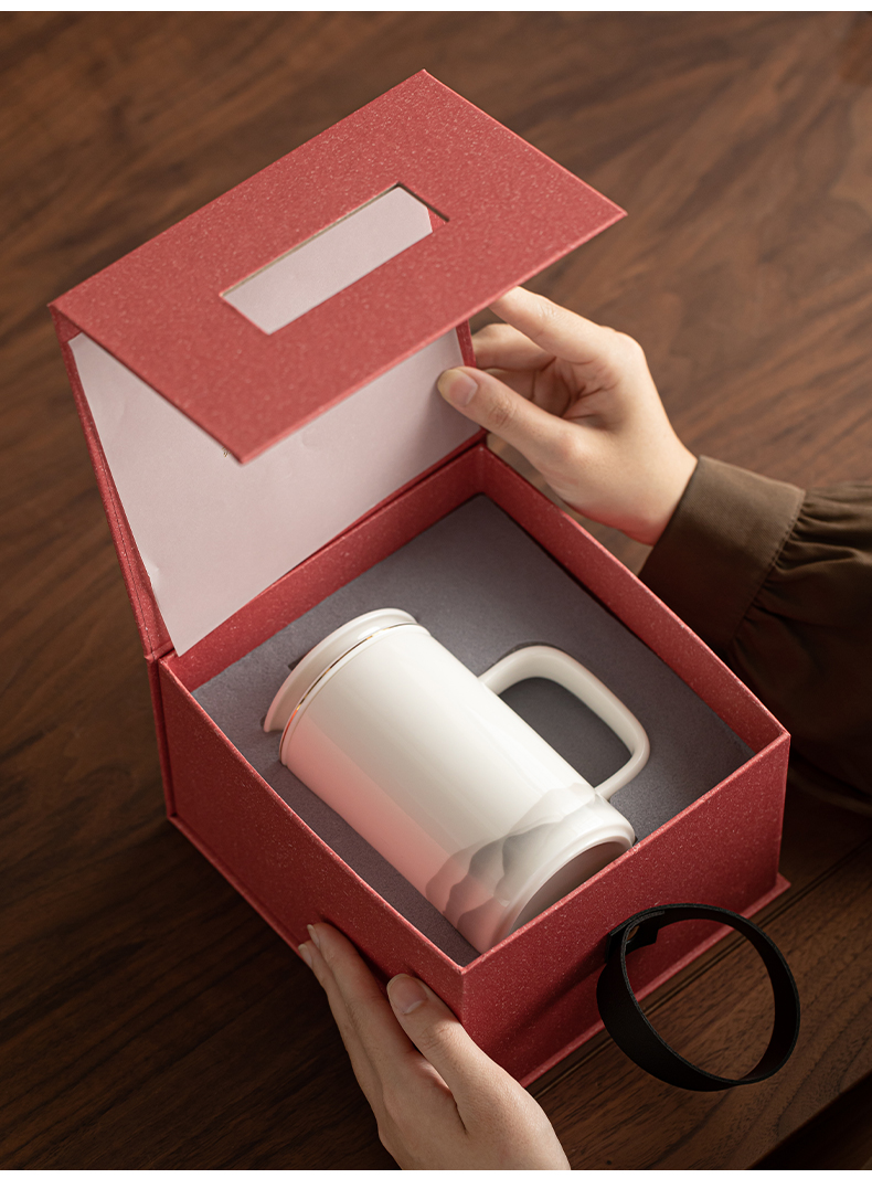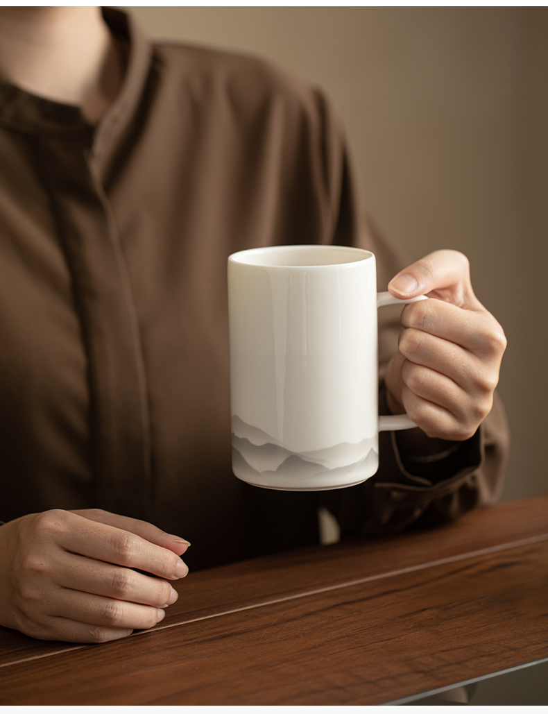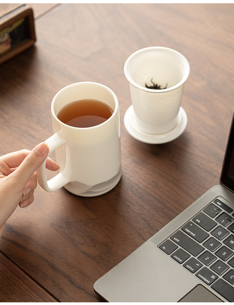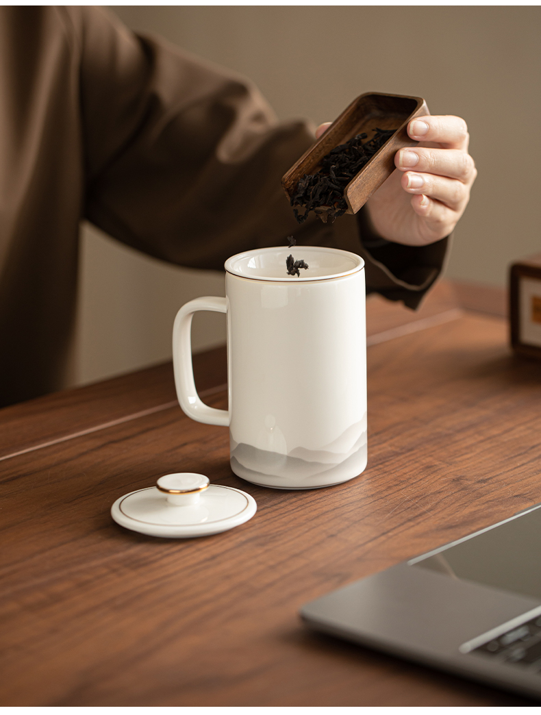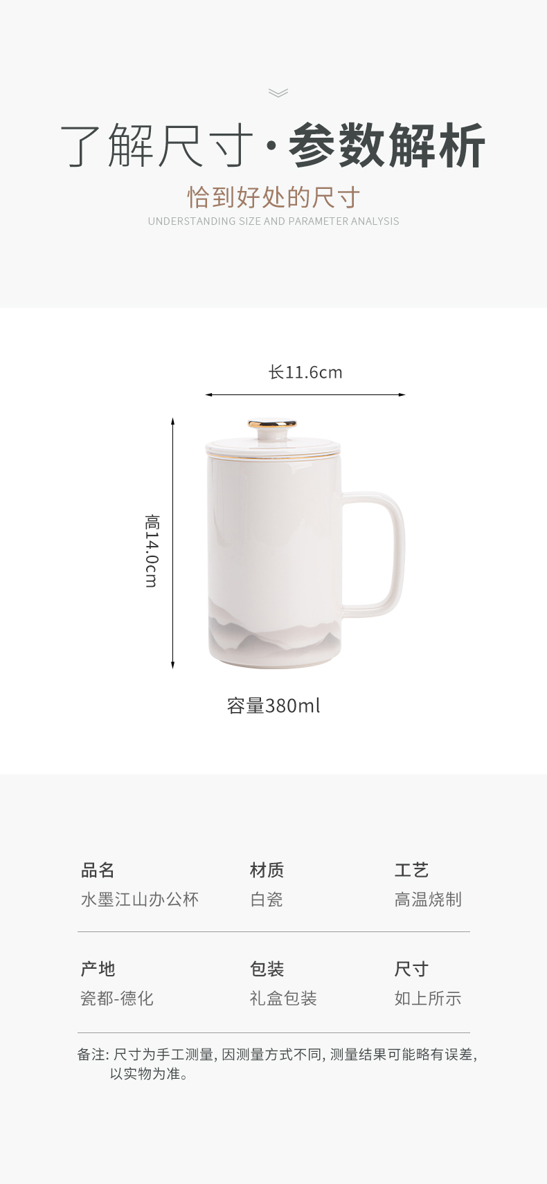 苏氏陶瓷(SUSHI CERAMICS) 江山如画带过滤办公杯 J1265 茶杯380ml 白色(单位:套)