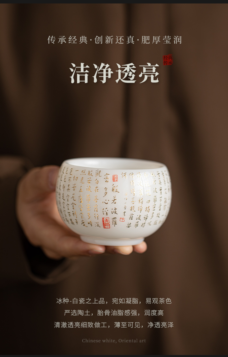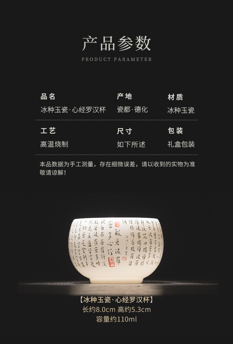 苏氏陶瓷(SUSHI CERAMICS) 冰种玉瓷心经罗汉杯 J1260 茶杯110ml 白色(单位:个)