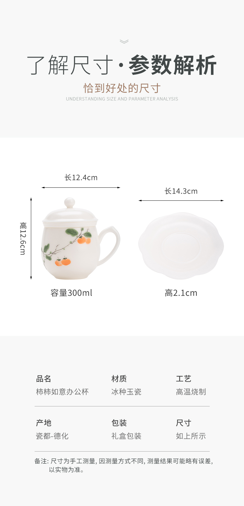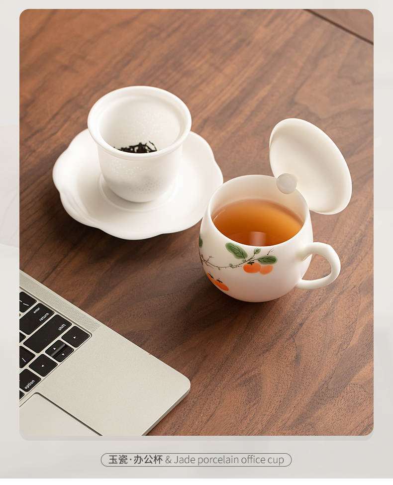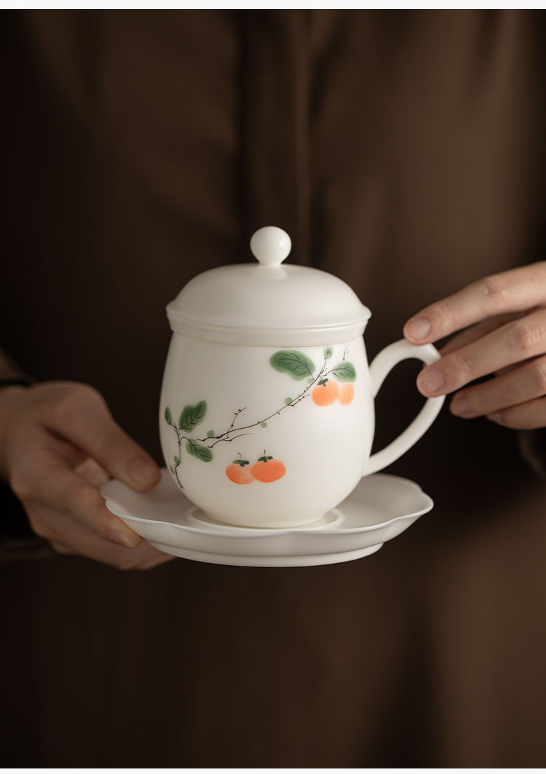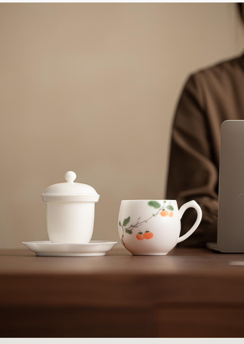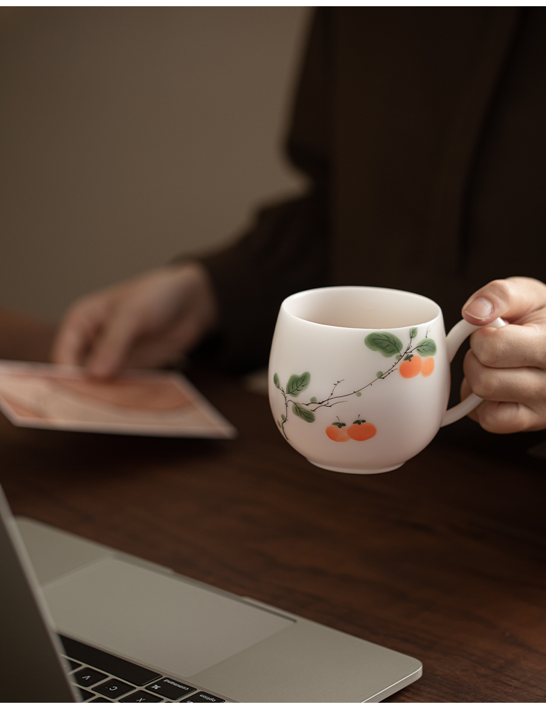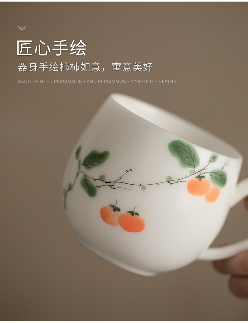 苏氏陶瓷(SUSHI CERAMICS) 素烧手绘柿柿如意办公杯 J1264 茶杯300ml 白色(单位:套)