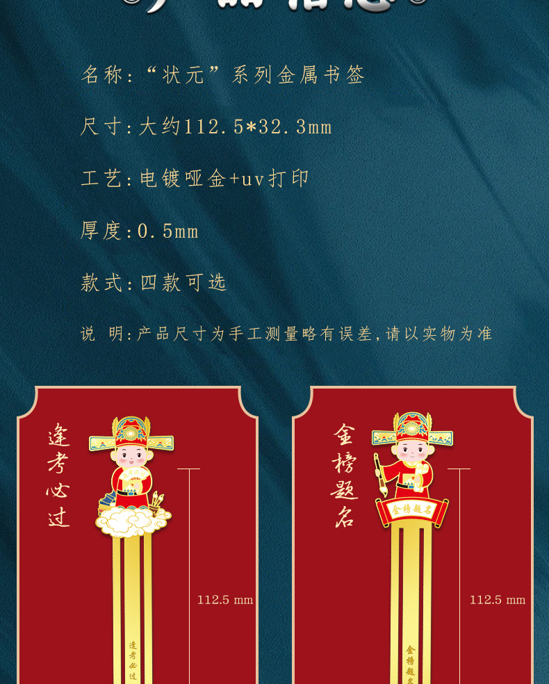 童益星 状元书签 逢考必过 长112.5mm 金色(单位:个)