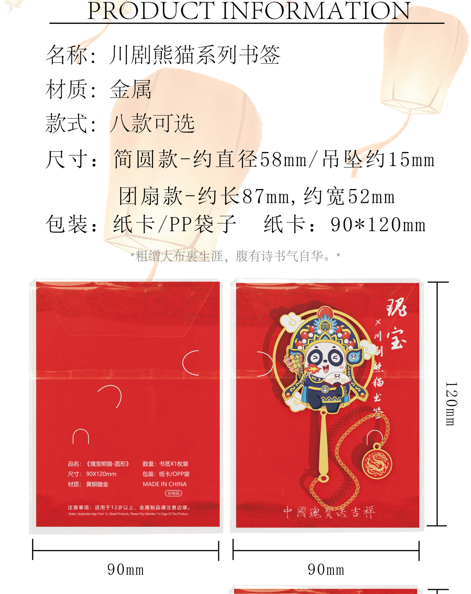 童益星 川剧熊猫系列书签 熊猫侠 直径58mm 混色(单位:个)
