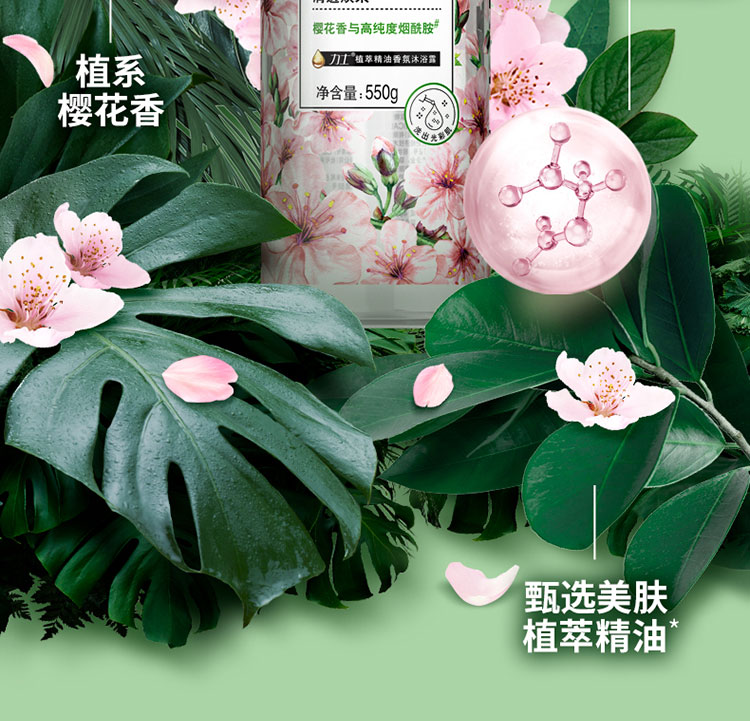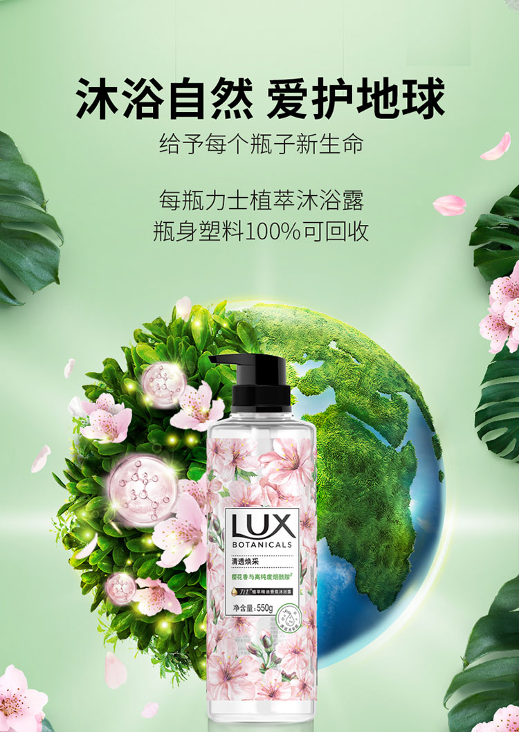 力士植萃精油香氛沐浴露樱花香与烟酰胺550g 瓶 混色