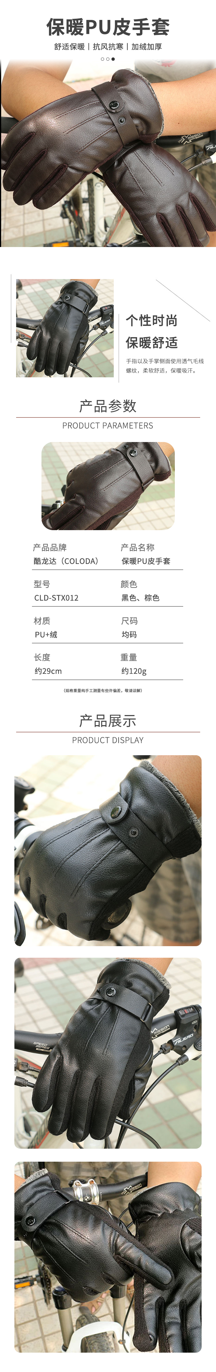 酷龙达(Coloda) 冬季保暖加绒防寒PU皮手套 CLD-STX012 均码 混色(单位:双)