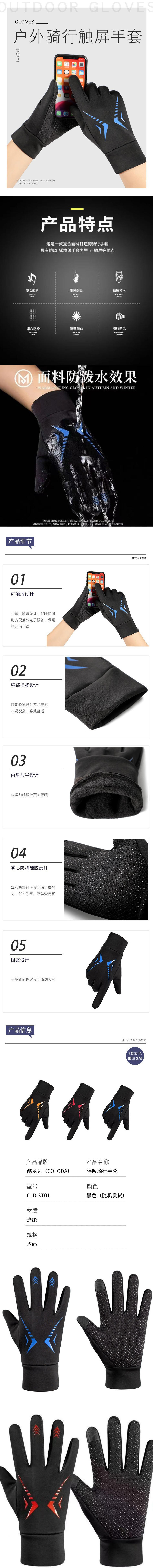 酷龙达(Coloda) 秋冬加绒保暖防风手套 CLD-ST01 均码 混色(单位:双)