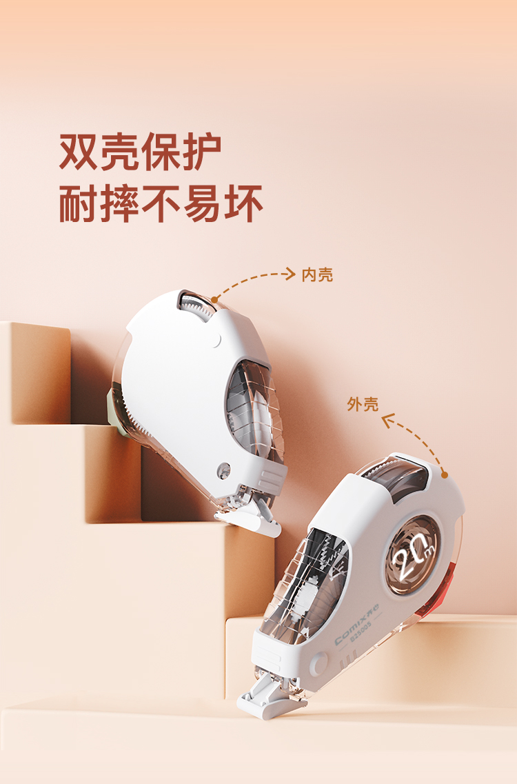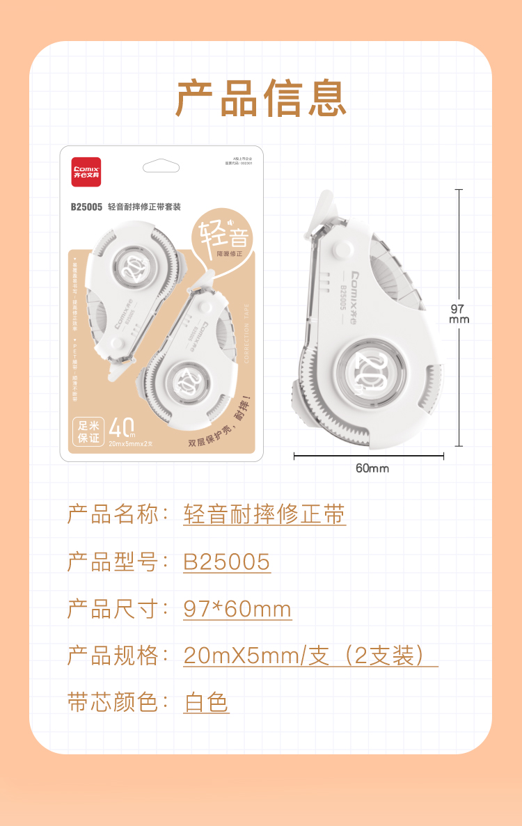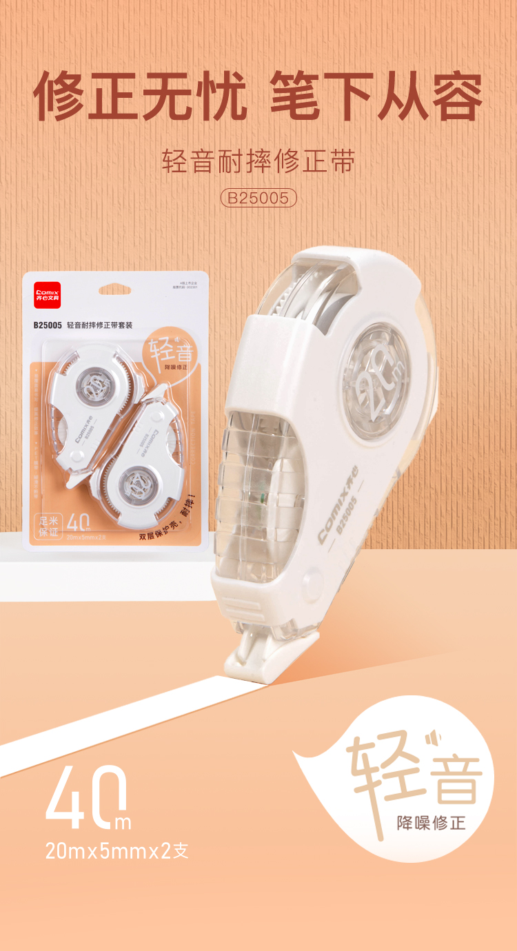 齐心(COMIX) 轻音耐摔修正带套装 40m B25005 20M*2个 白色(单位:卡)