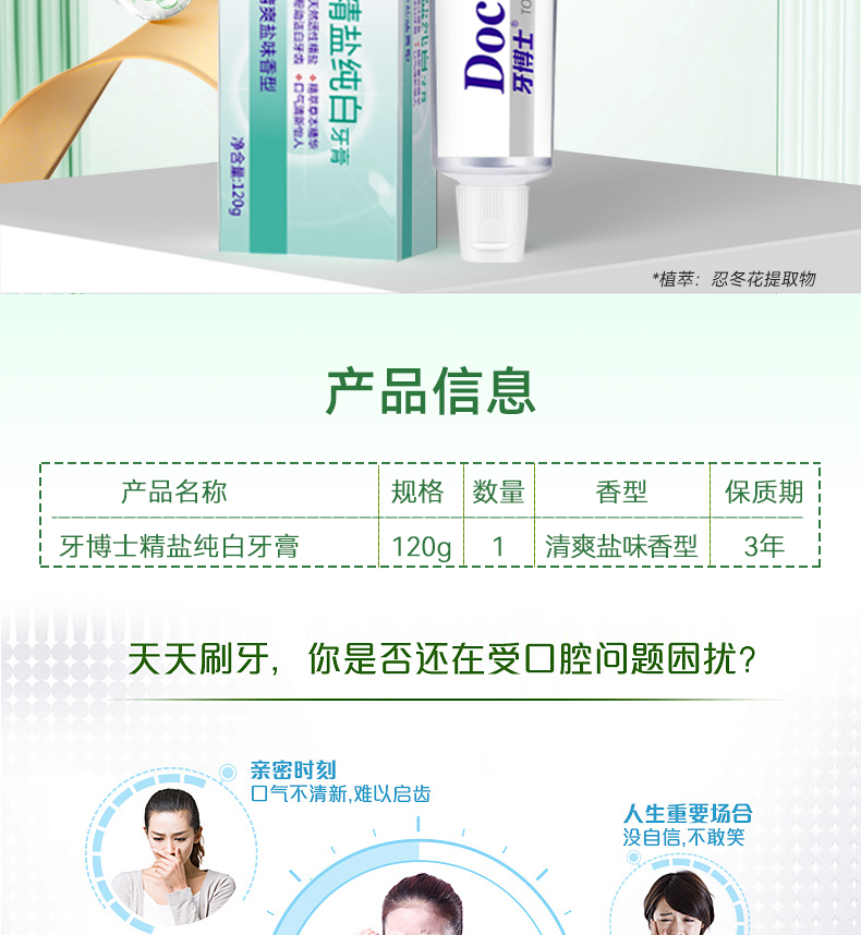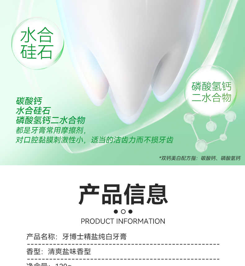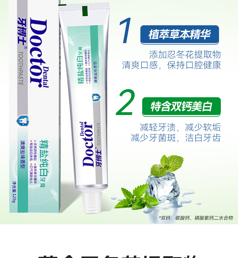 牙博士 牙龈护理清新口气去牙渍洁白 精盐纯白 牙膏 120g 白色(单位:支)
