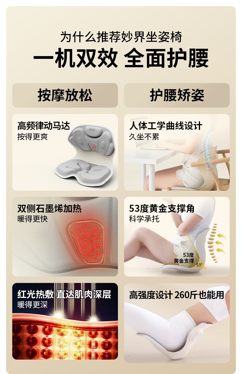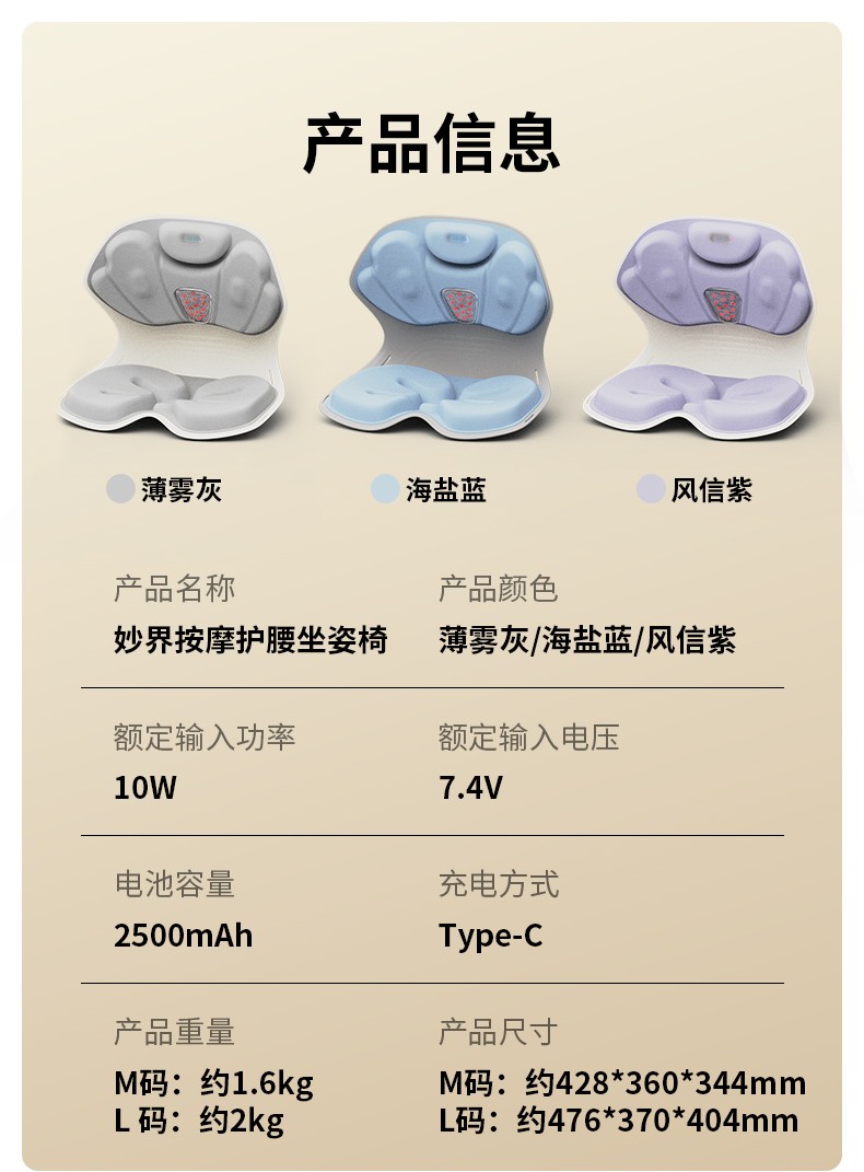妙界(MIAOJIE) 按摩护腰坐姿椅 MH02 2kg L 风信紫(单位:件)