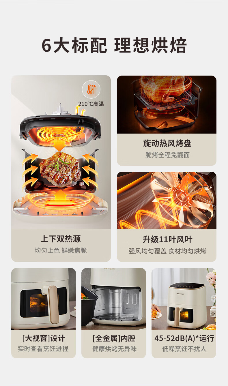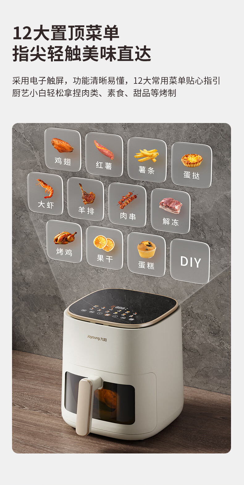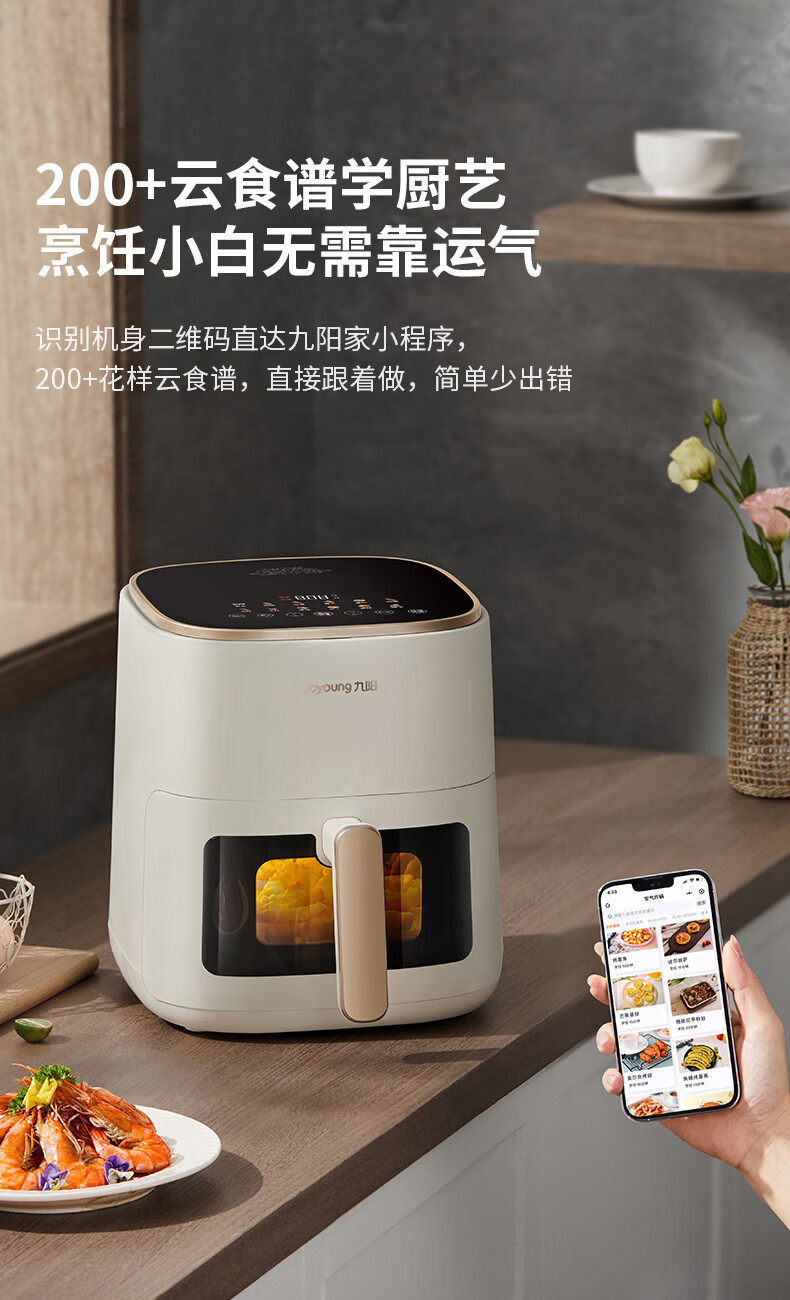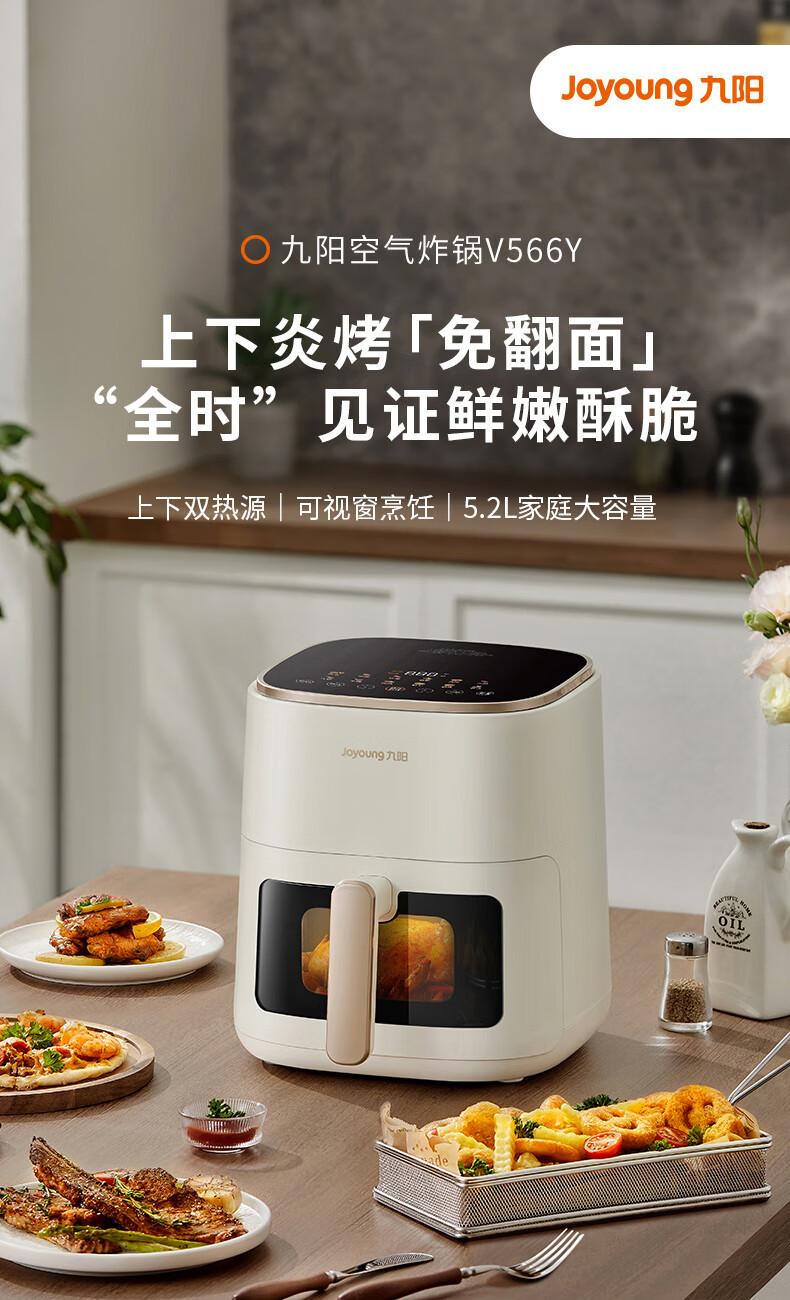 九阳(Joyoung) 全金属内腔蒸汽嫩炸空气炸锅 KL50-V566Y 5.2L 白色(单位:台)