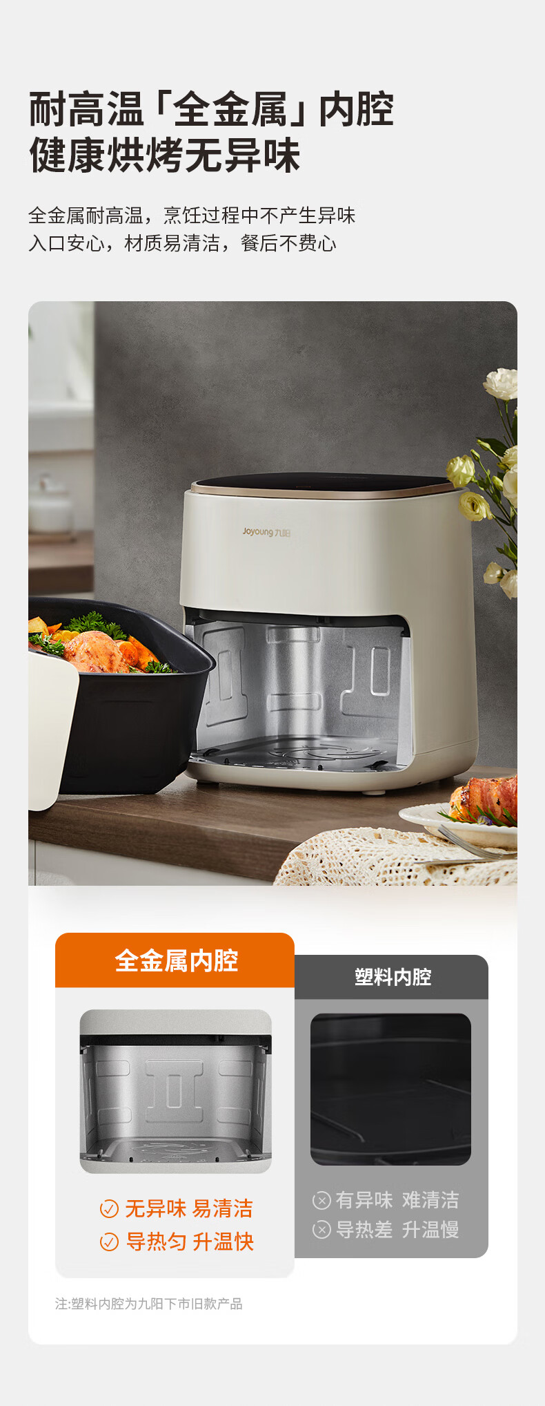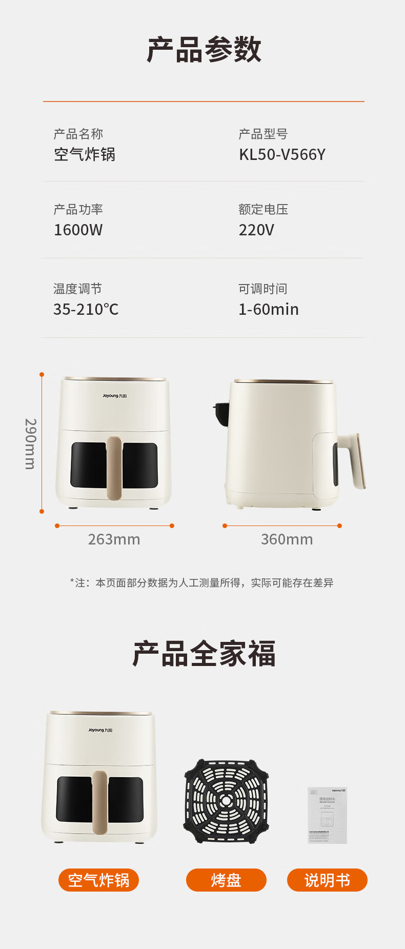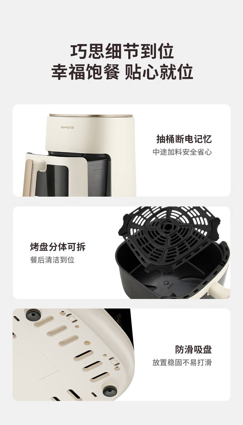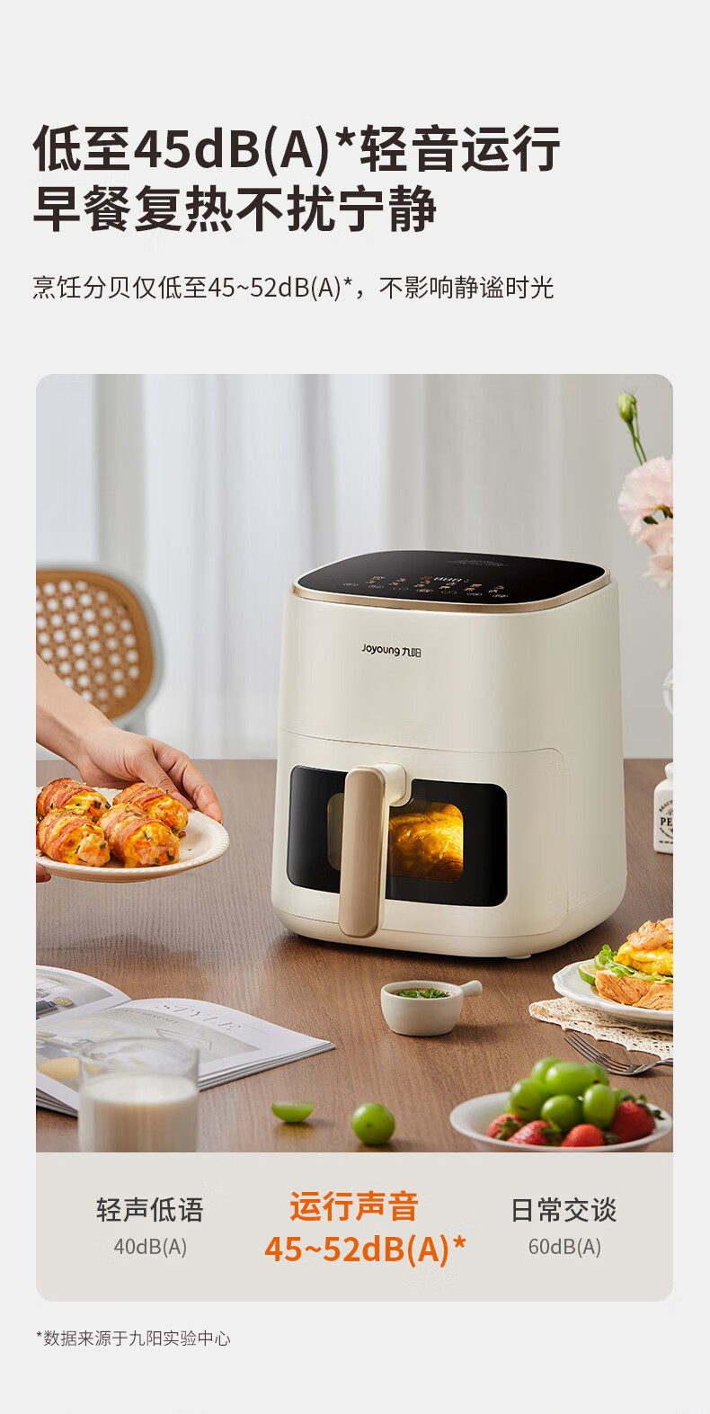 九阳(Joyoung) 全金属内腔蒸汽嫩炸空气炸锅 KL50-V566Y 5.2L 白色(单位:台)
