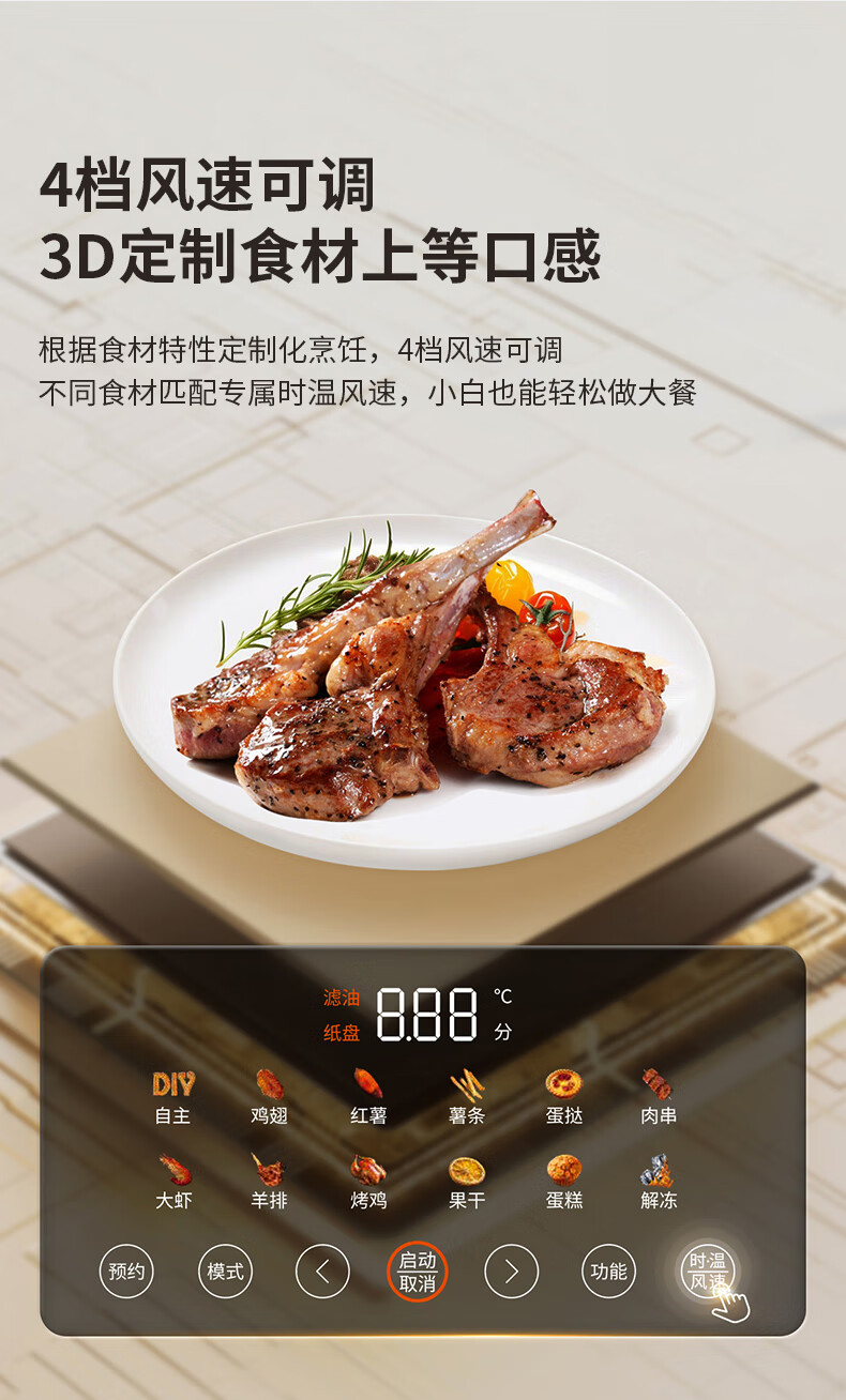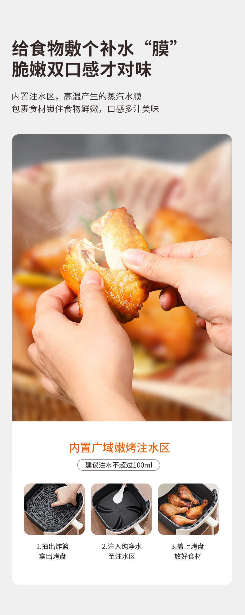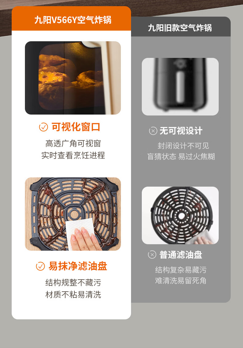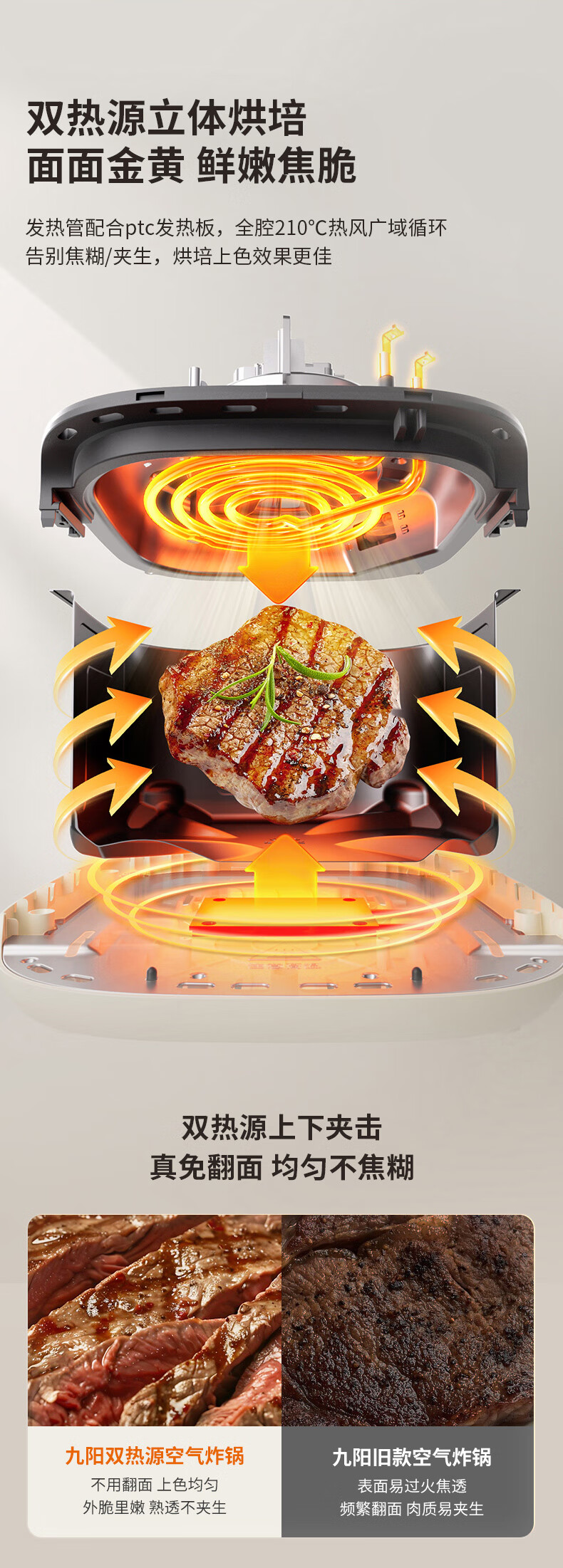 九阳(Joyoung) 全金属内腔蒸汽嫩炸空气炸锅 KL50-V566Y 5.2L 白色(单位:台)
