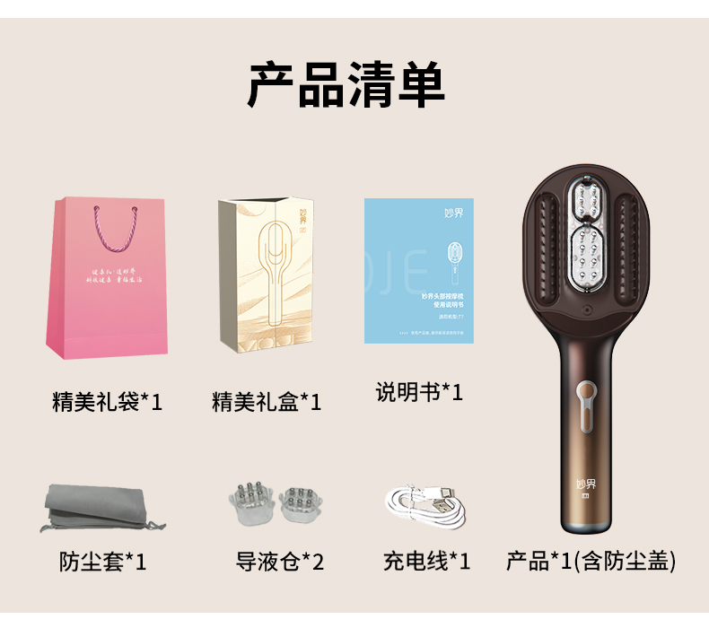 妙界(MIAOJIE) 头部按摩梳 T7S 480g 流光金(单位:件)