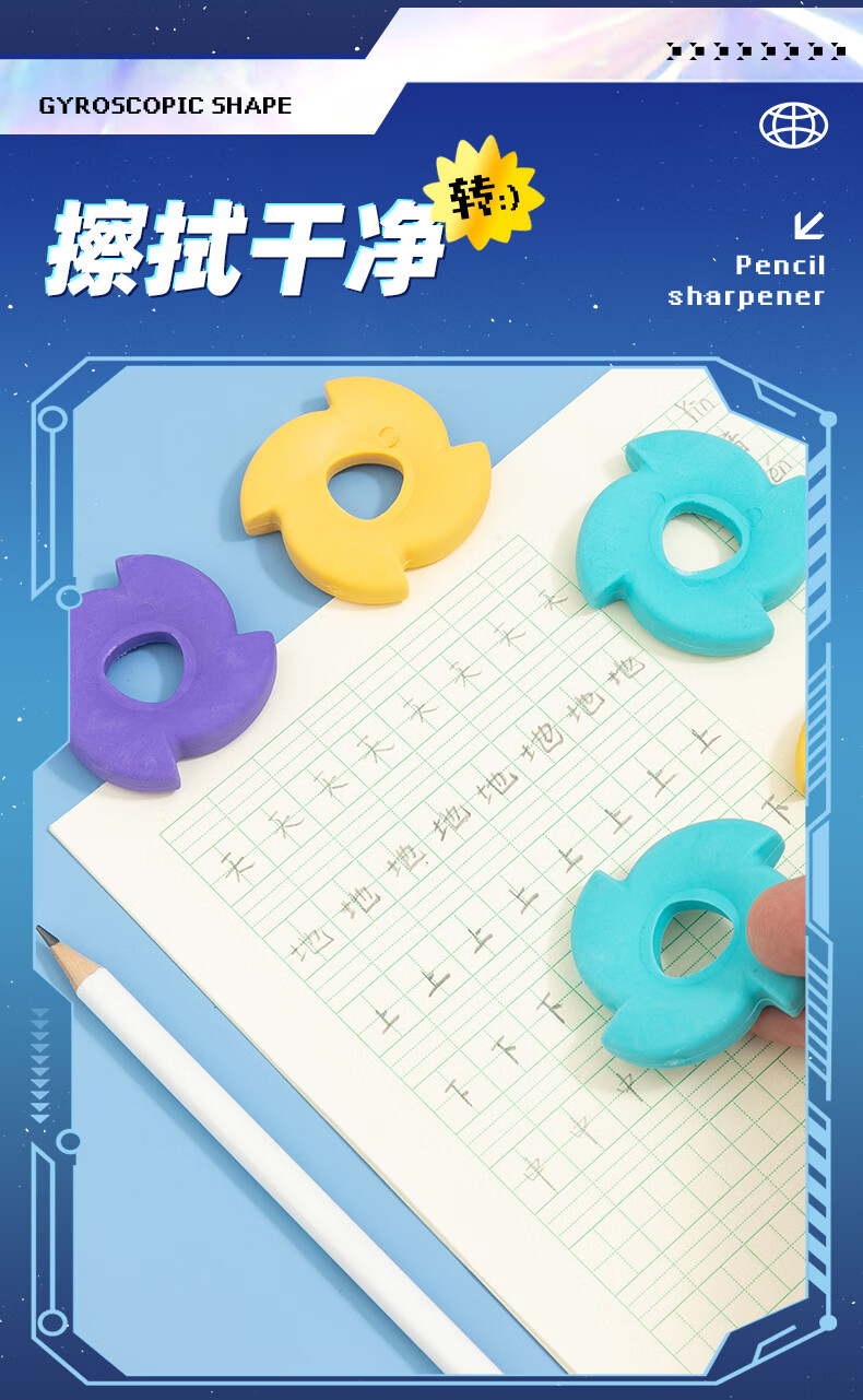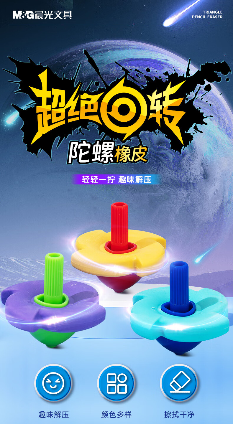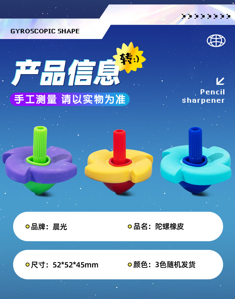 晨光(M&G) 陀螺橡皮 AXP963TD 52*52*45mm 3块装 混色(单位:组)