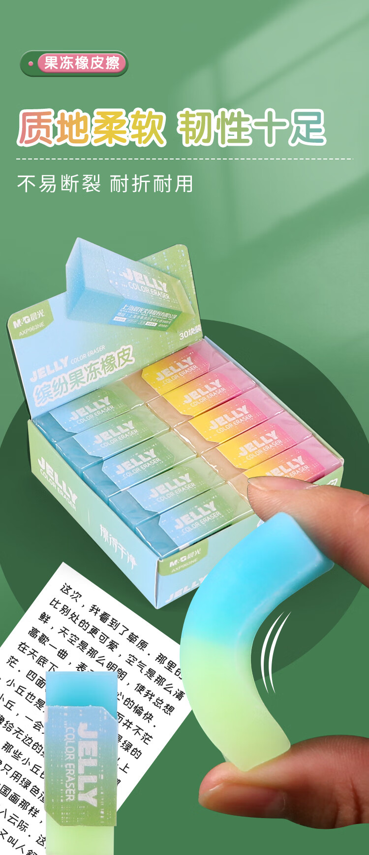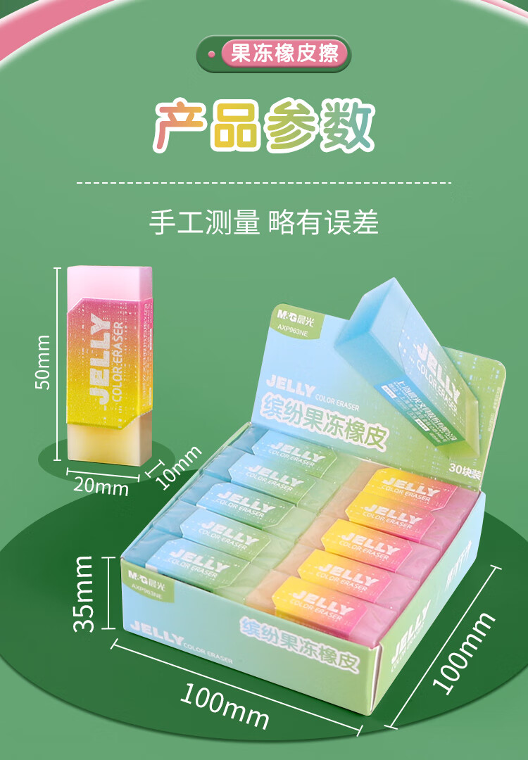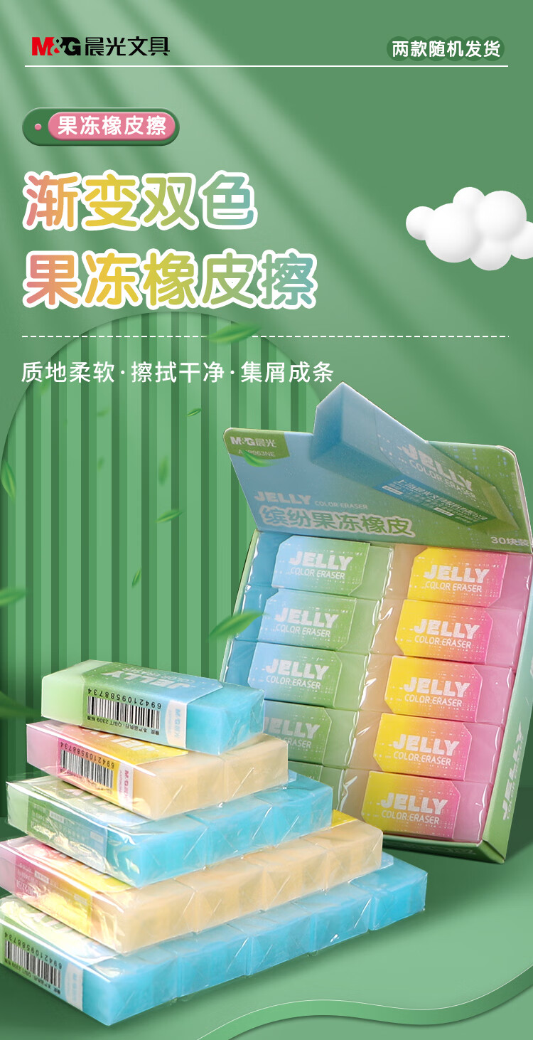 晨光(M&G) 双色果冻缤纷橡皮 AXP963NE 50mm*20mm 10块装 混色(单位:组)