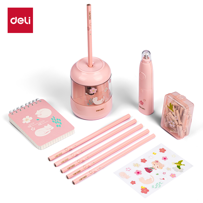 得力(deli) 古风女孩电动文具套装 68918A 12件 粉色(单位:盒)