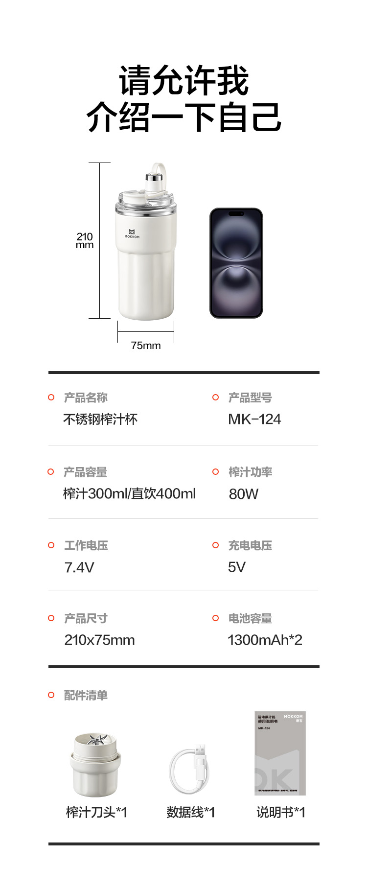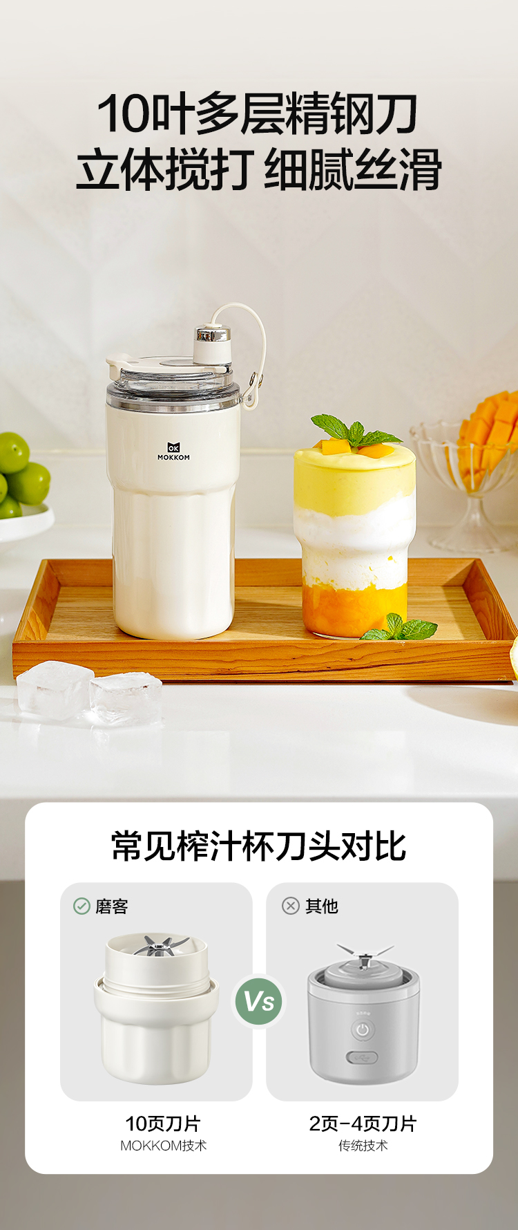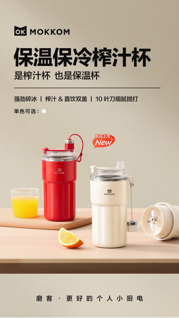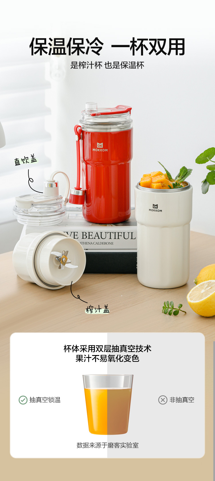 磨客(MOKKOM) 不锈钢便携保温保冷运动榨汁杯 MK-124W 400ML 白色(单位:台)