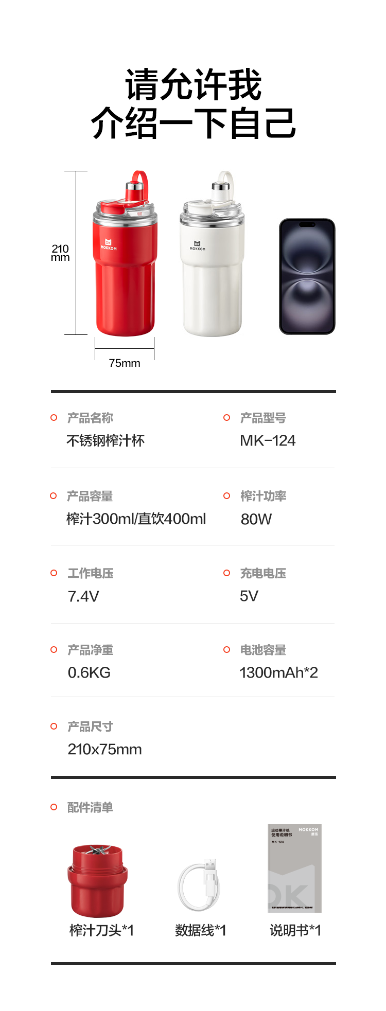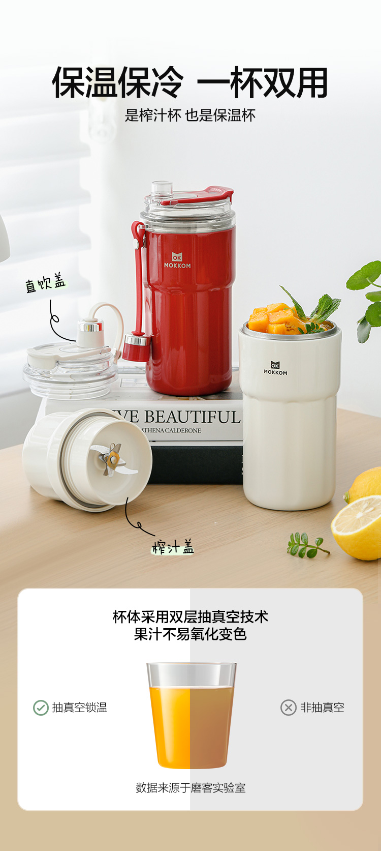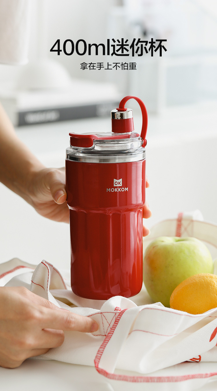 磨客(MOKKOM) 不锈钢便携保温保冷运动榨汁杯 MK-124R 400ML 红色(单位:台)