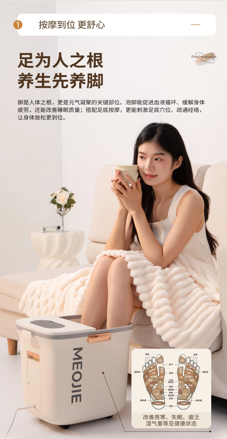 妙界(MIAOJIE) 气囊按摩足浴桶 Z9 4.6kg 奶油白(单位:件)