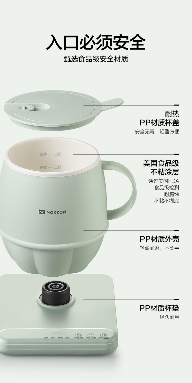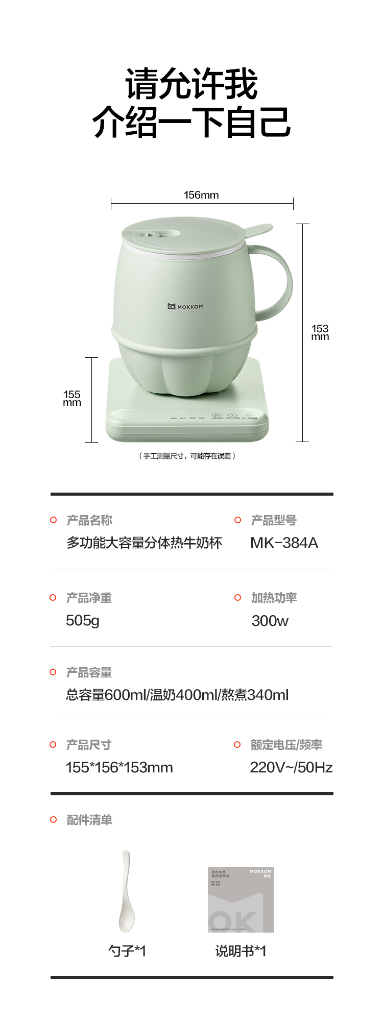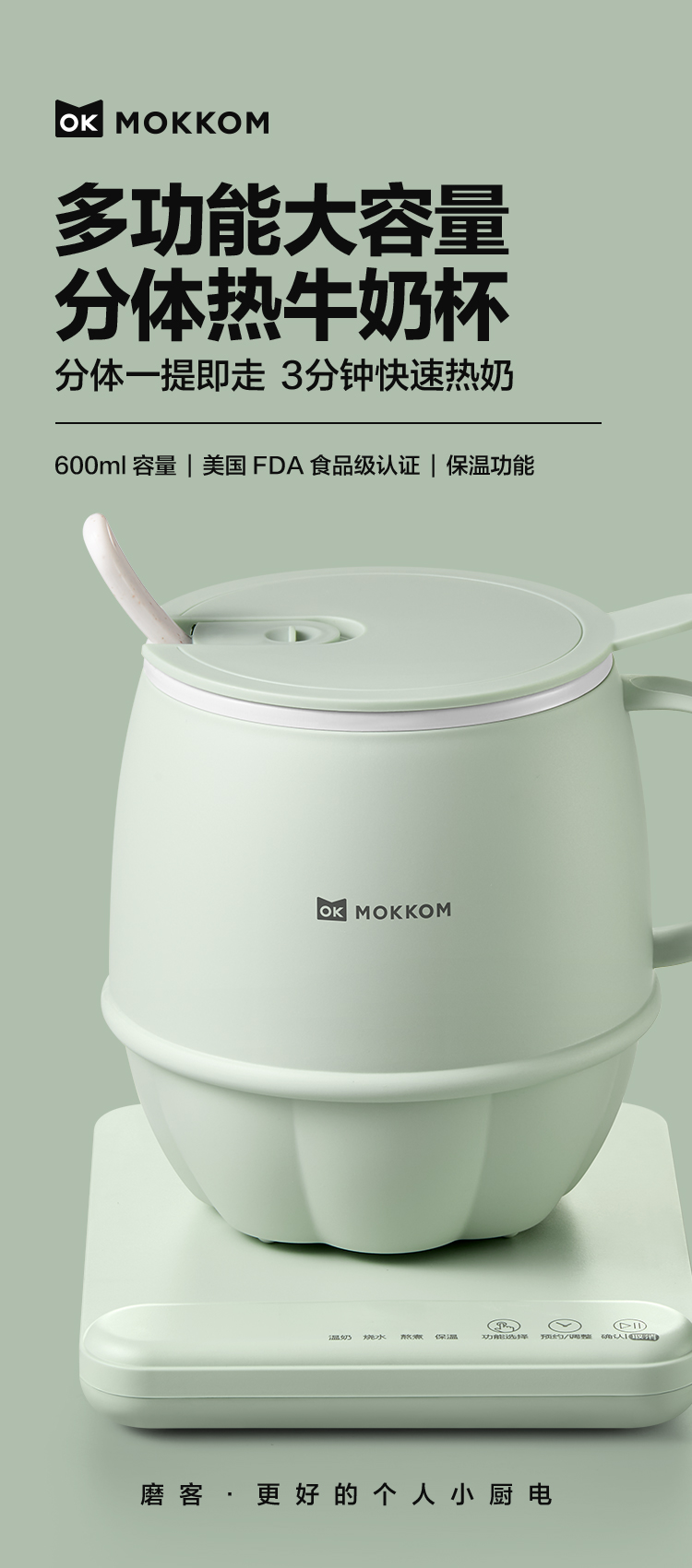 磨客(MOKKOM) 多功能分体热牛奶杯 384AL 600ML 豆蔻绿(单位:台)