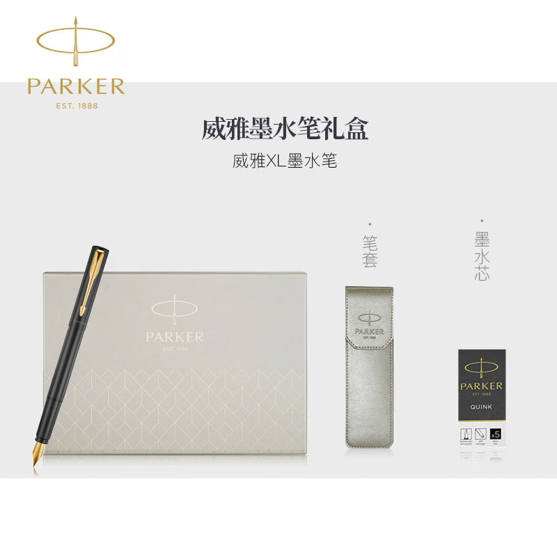 派克(PARKER) 钢笔 威雅XL经典黑金夹墨水笔 笔+笔袋+墨水芯 黑色(单位:套)