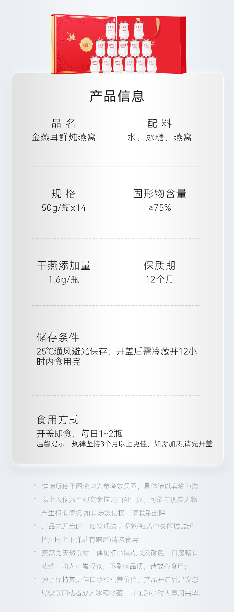 金燕耳 精炖燕窝 即食滋补 50g/瓶*14瓶/盒 红色(单位:盒)