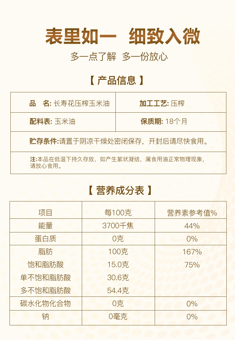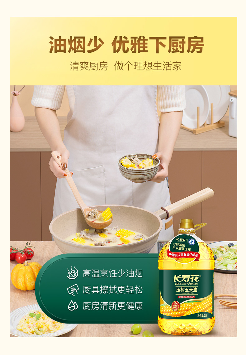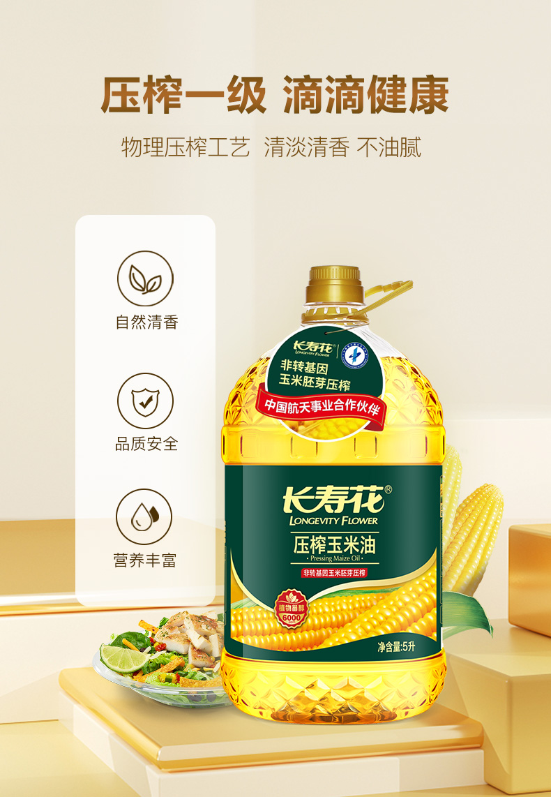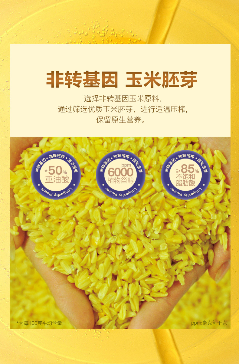 长寿花 压榨玉米油5L非转基因物理压榨一级 单位:桶 黄色