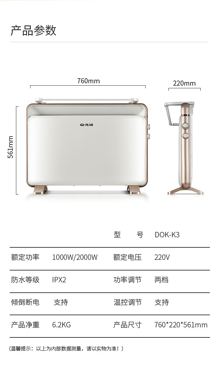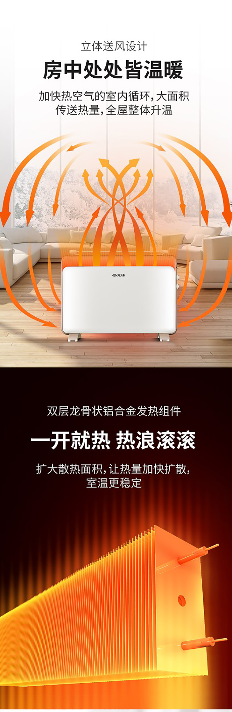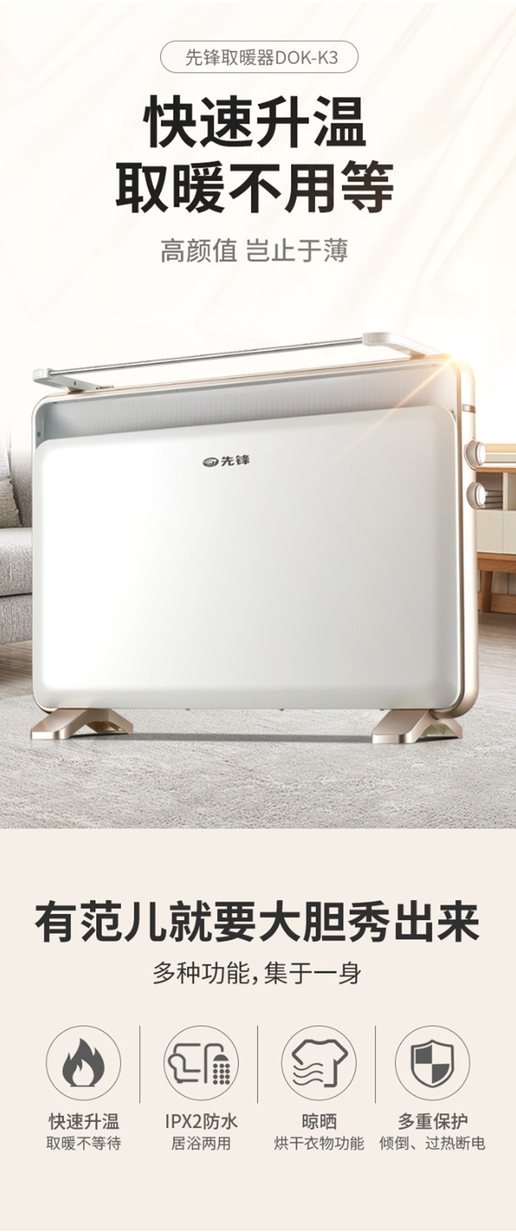 先锋(SINGFUN) DOK-K3对流式取暖器 台 白色