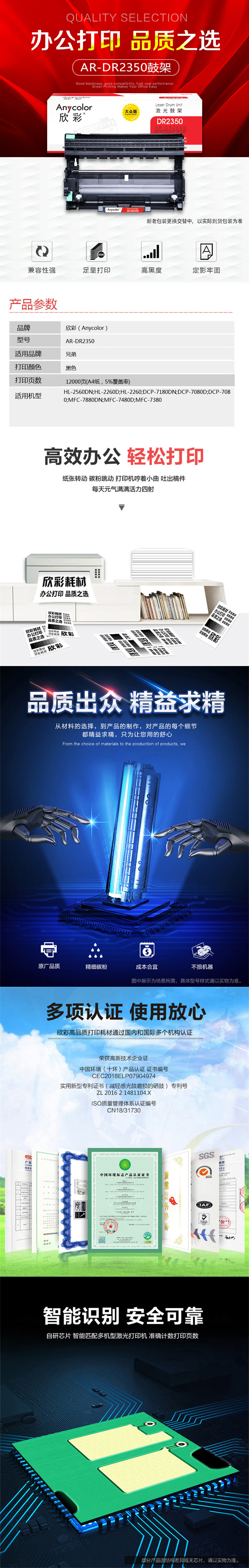 欣彩AR-DR2350鼓架 大众版硒鼓 适用兄弟DR-2350 HL-2260 2260D 2560DN DCP-7080 7080D 7180DN激光打印机 黑色