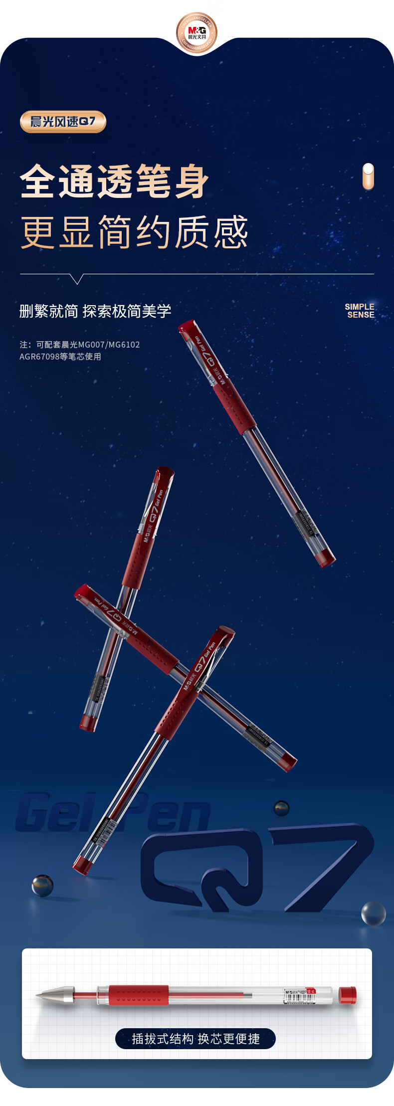 晨光(M&G) 子弹头签字笔 Q7 0.5mm12支 红色(单位:盒)