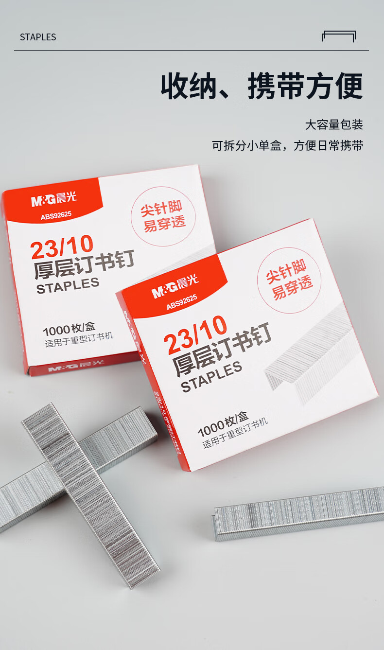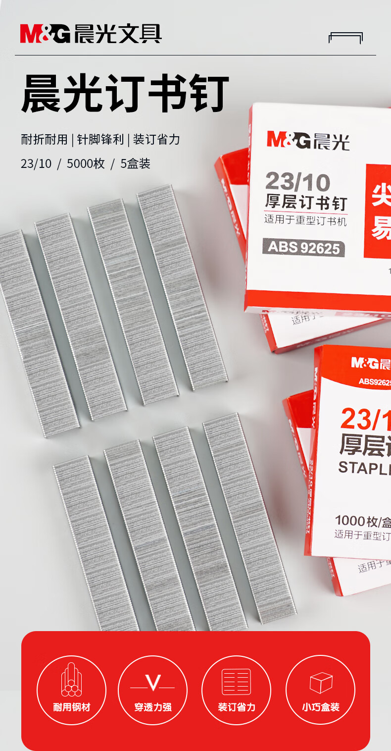 晨光(M&G) 23/10号厚层订书钉 ABS92625 1000枚*5盒 银色(单位:组)