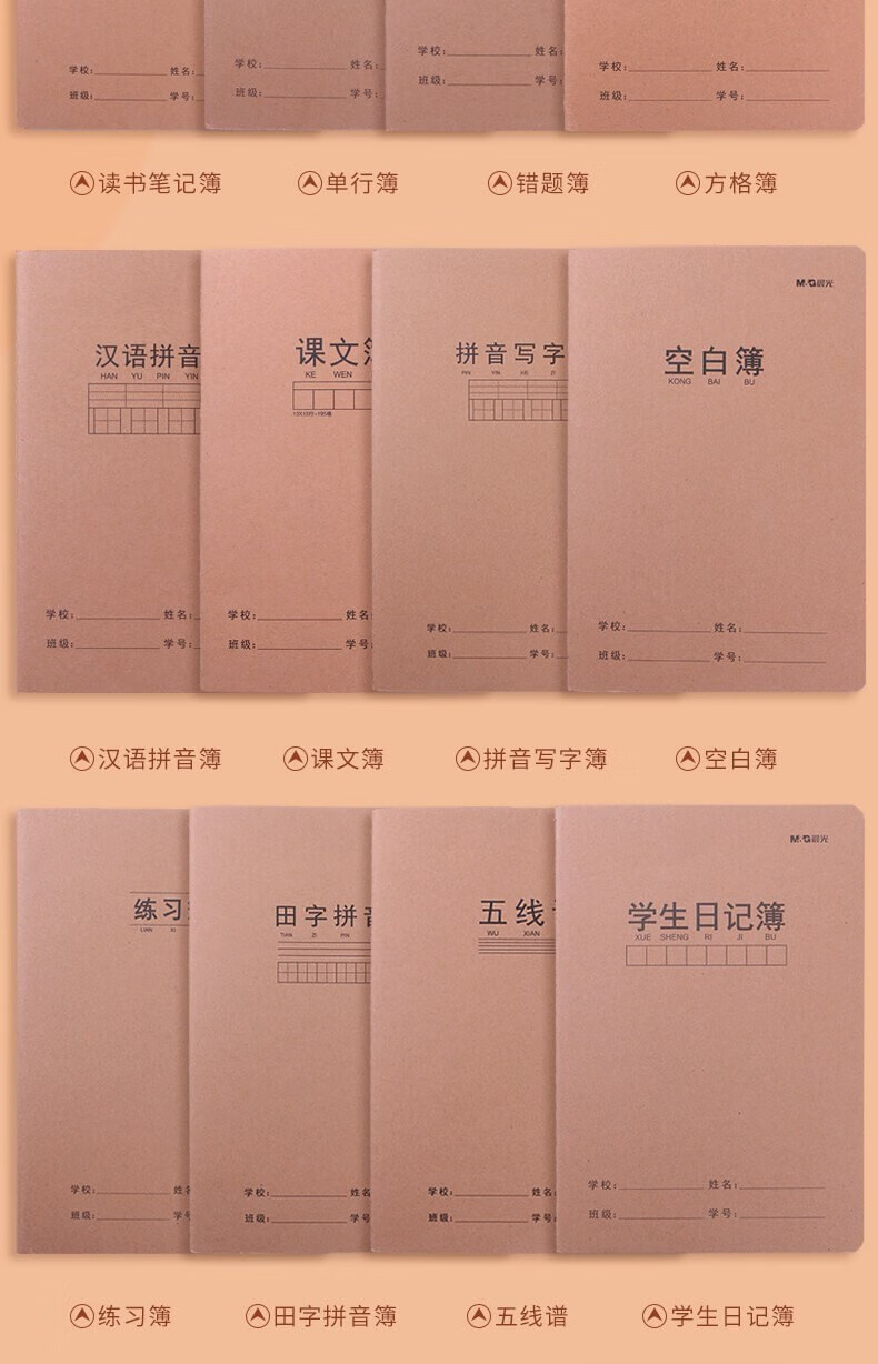 晨光文具(M&G)16K/32页缝线本 牛皮纸作文簿记事本笔记本子学生软抄本【作文簿】20本装 F1