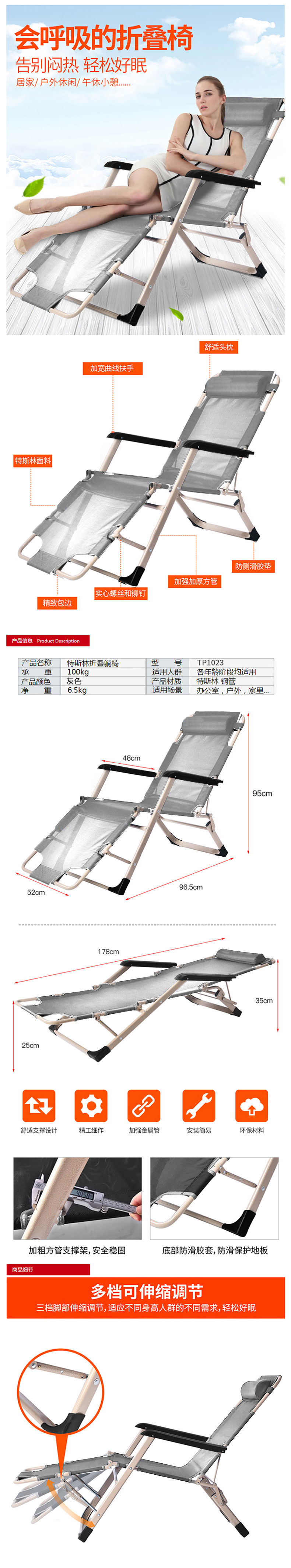 三极 TP1023 靠背逍遥椅 178*52*25cm 灰色