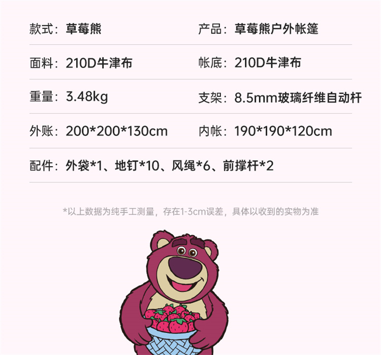 迪士尼JDFA23947-LO草莓熊系列户外四方账 玫红