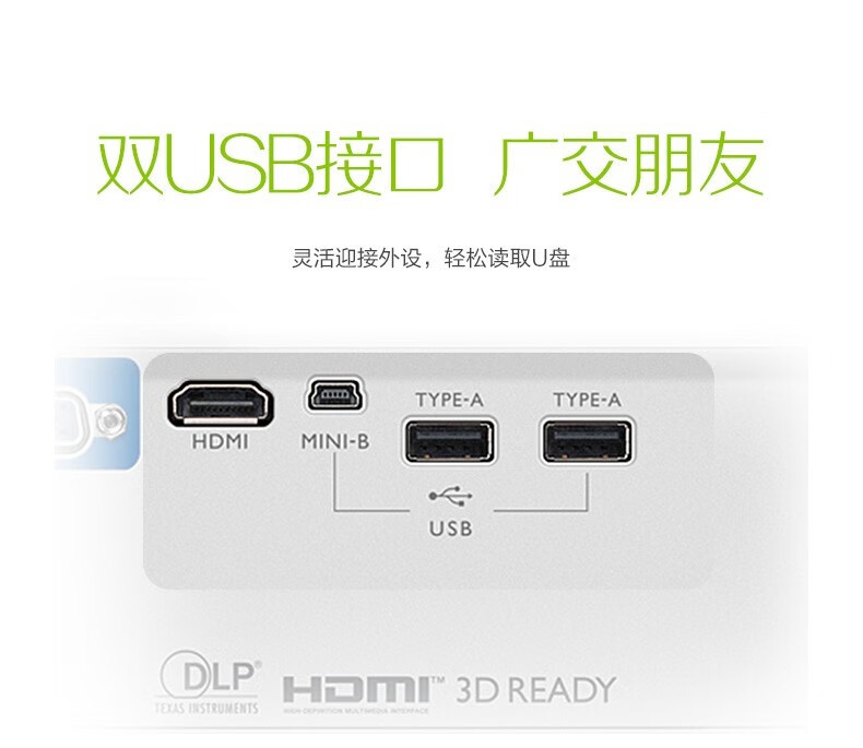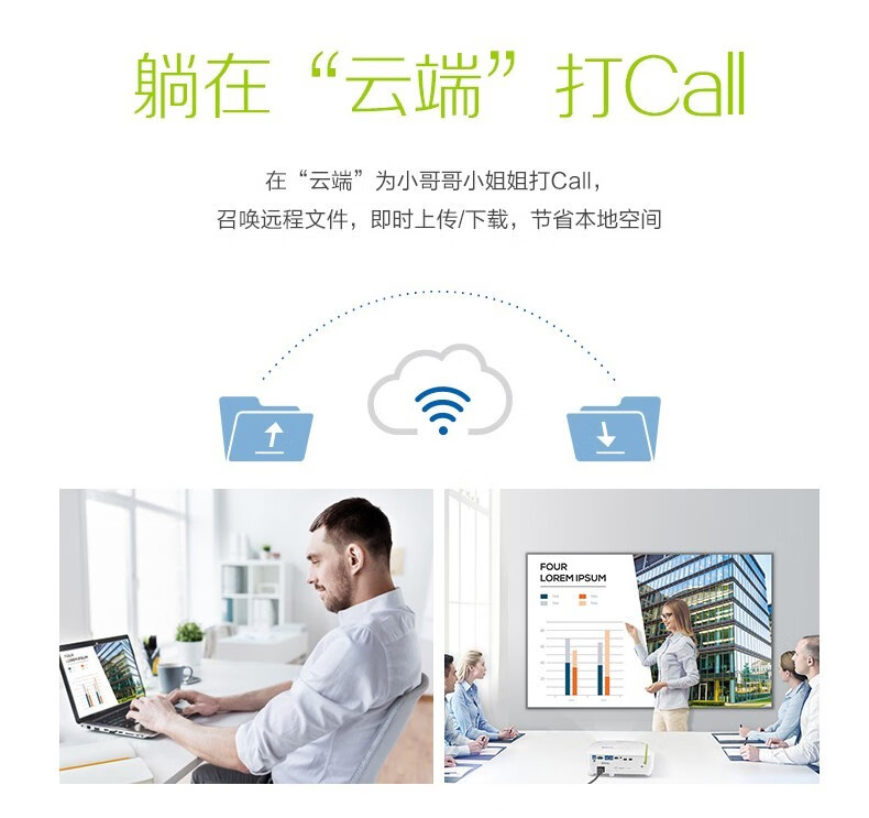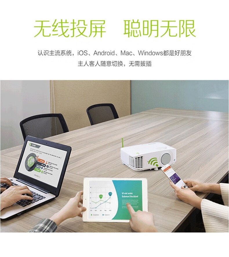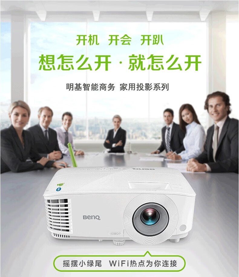 明基(BenQ)E1443 智能投影仪 办公家用商务会议教育投影机 无线WiFi手机同屏 3D投影 白色