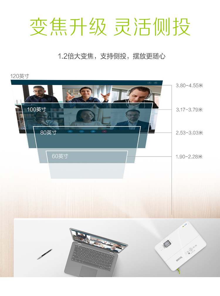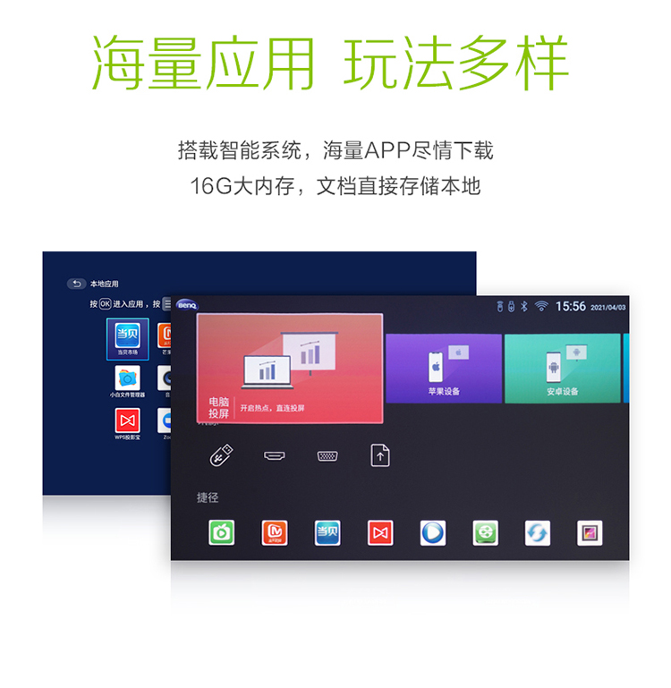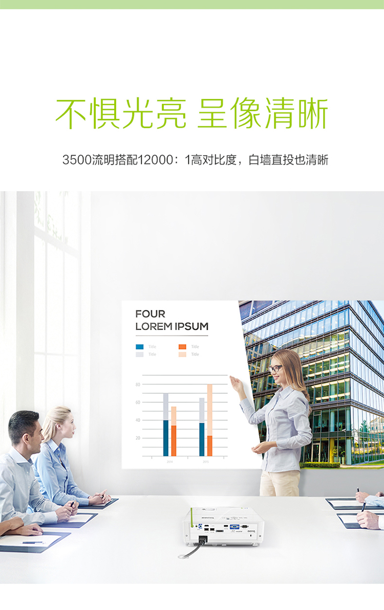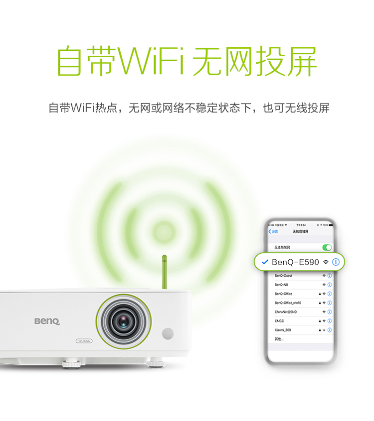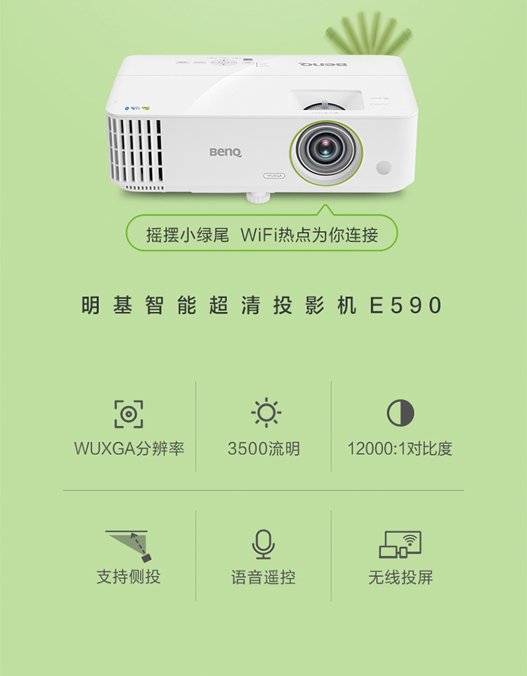 明基(BenQ)E590 智能投影仪 投影机 投影仪办公(超高清WUXGA 3500流明 双频双路 白色