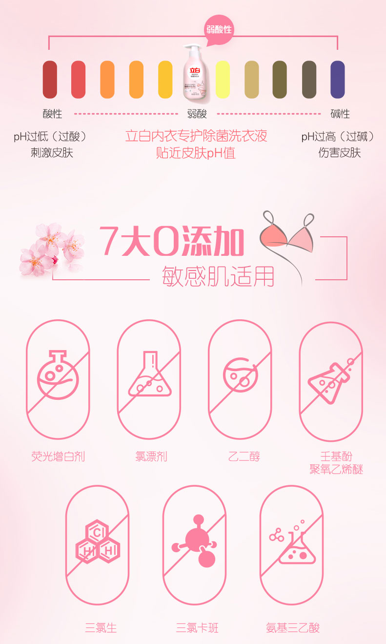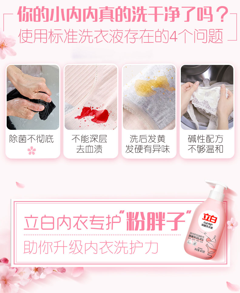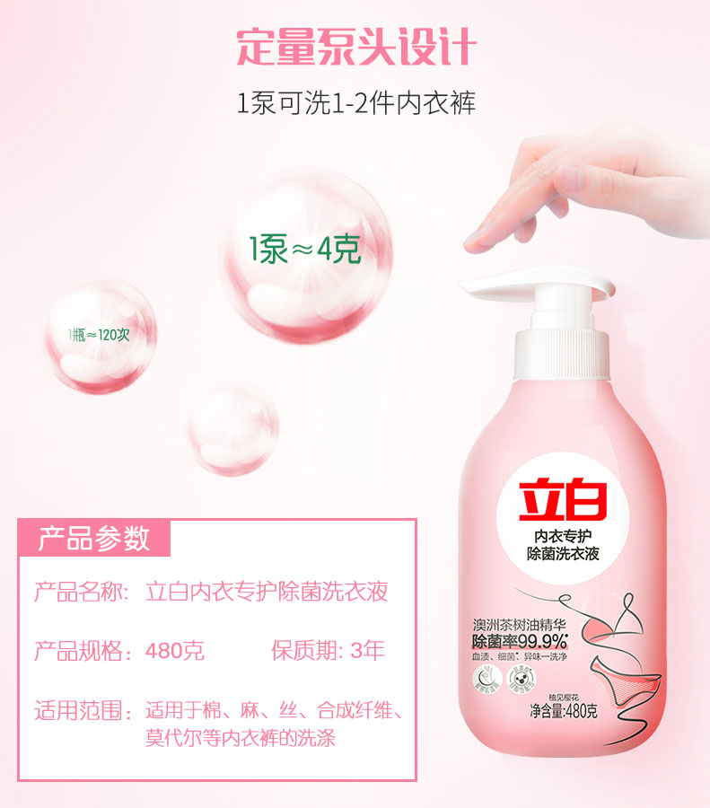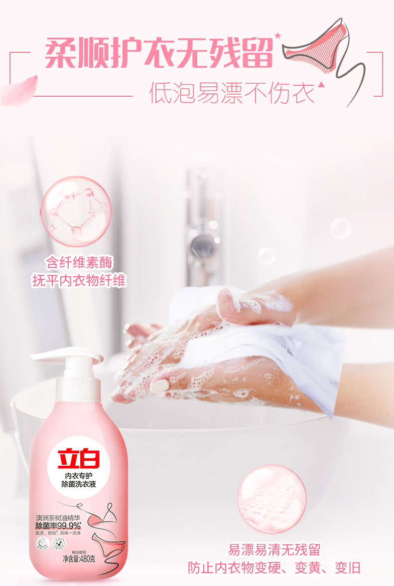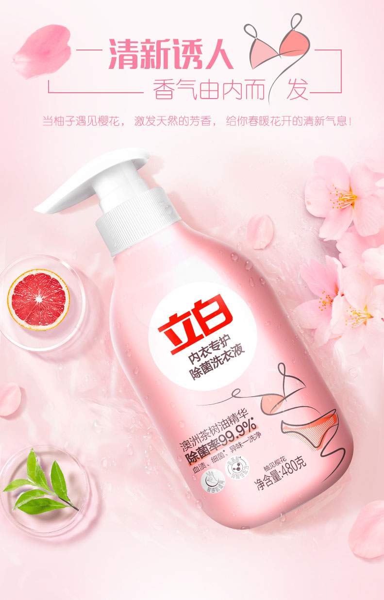 立白内衣专护除菌洗衣液480g*2瓶 淡雅樱花香 LB20220606YJDF004(单位:瓶) 白色