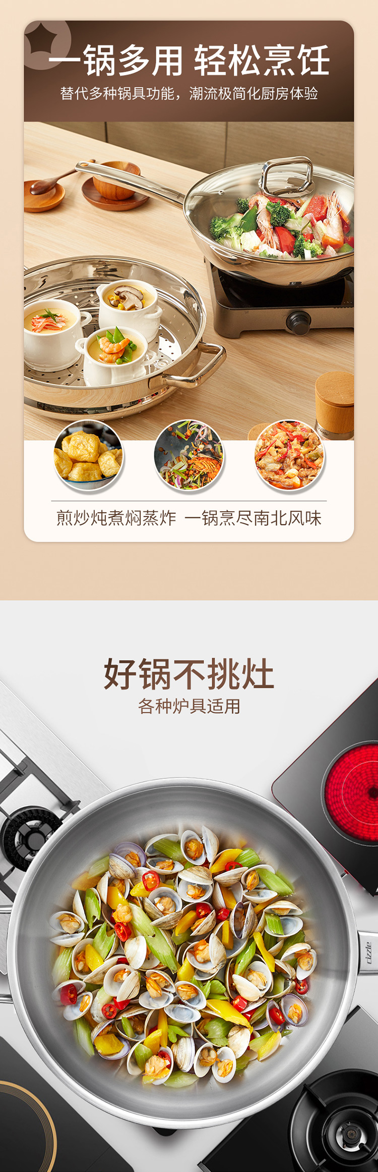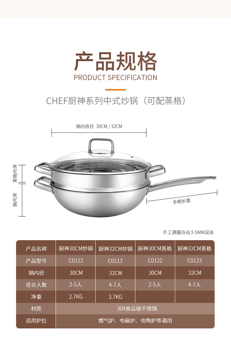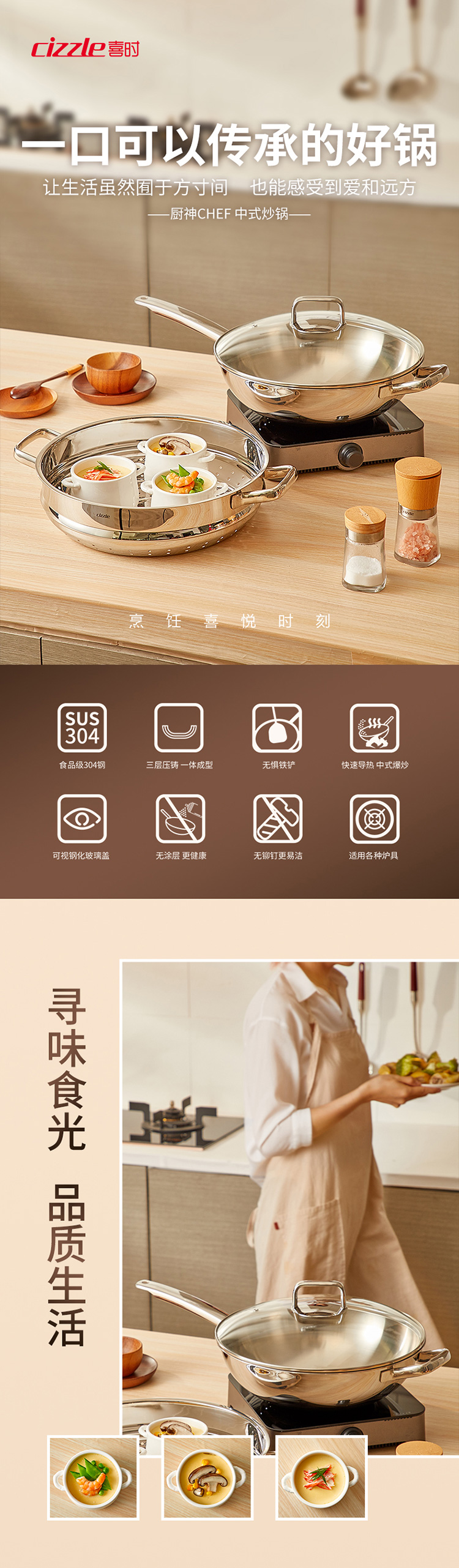 cizzle喜时 厨神30/32cm 炒锅/蒸格 白色