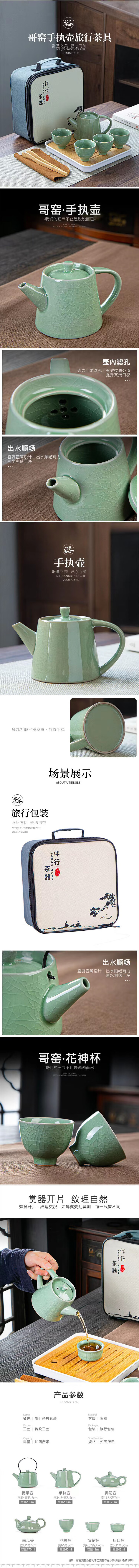 百斯克哥窑手执壶花神杯旅行茶具便携茶具套装 绿色