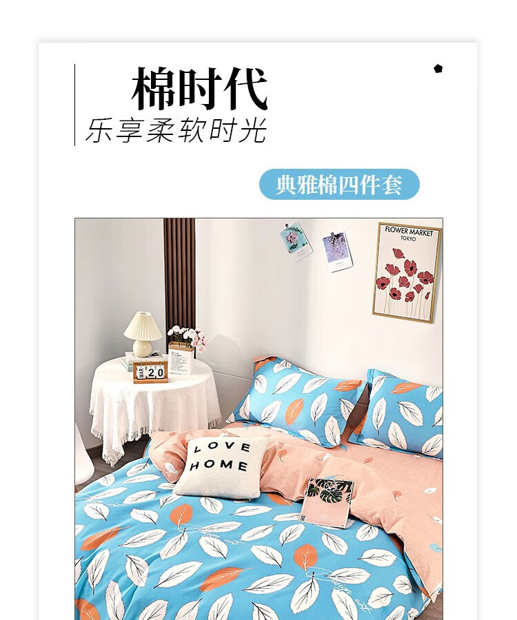 路易卡罗(LOUIS.KELLOG)典雅棉四件套LK-6234 叶秋 蓝色
