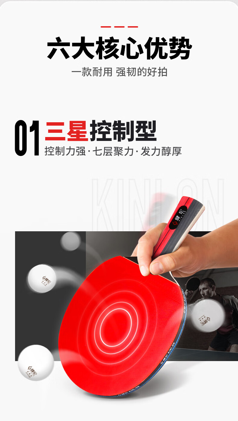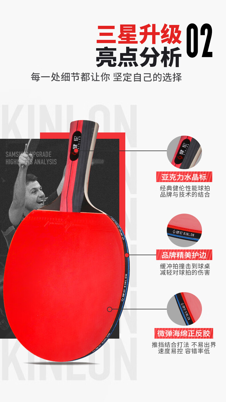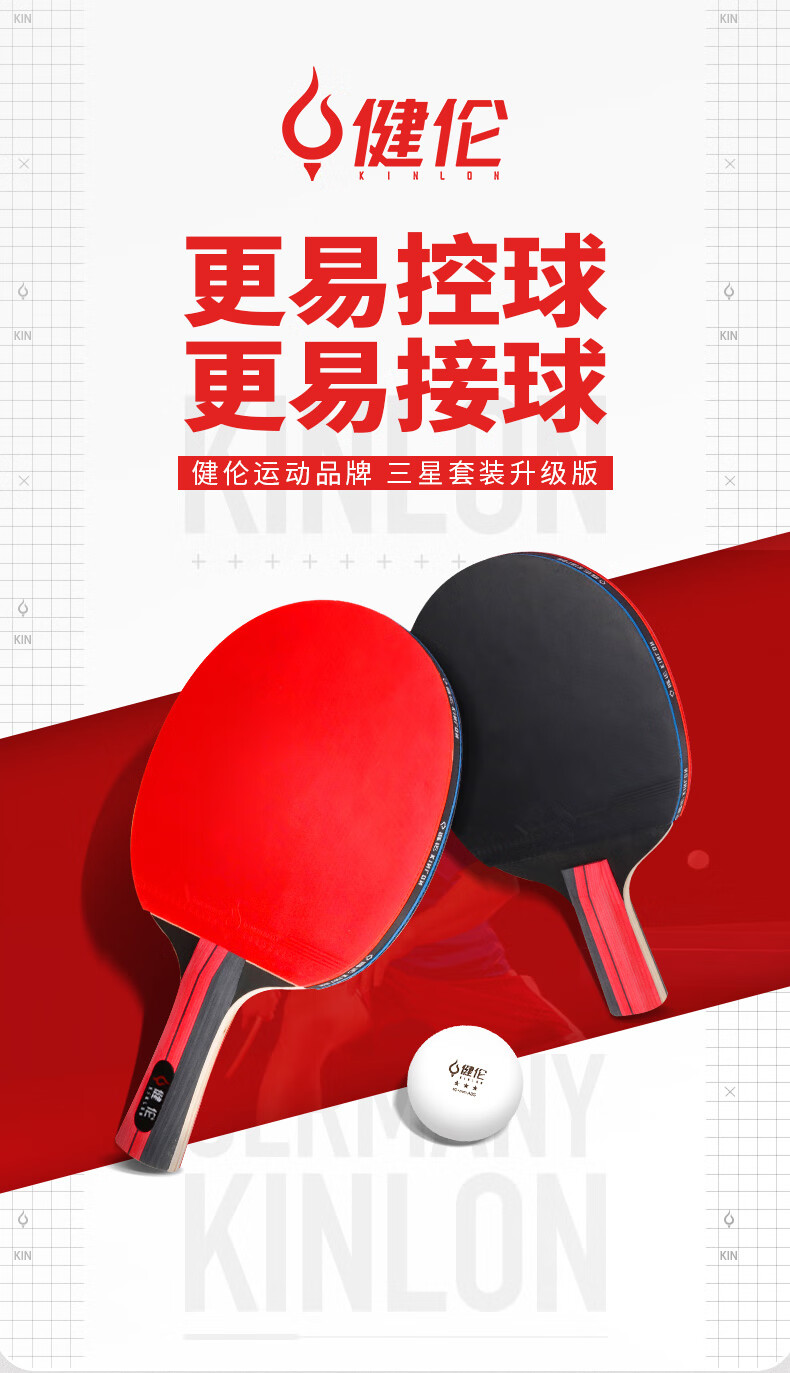 健伦(JEEANLEAN) 三星级乒乓球拍双拍一横拍一直拍球拍双面反胶JLP003S 枫叶色