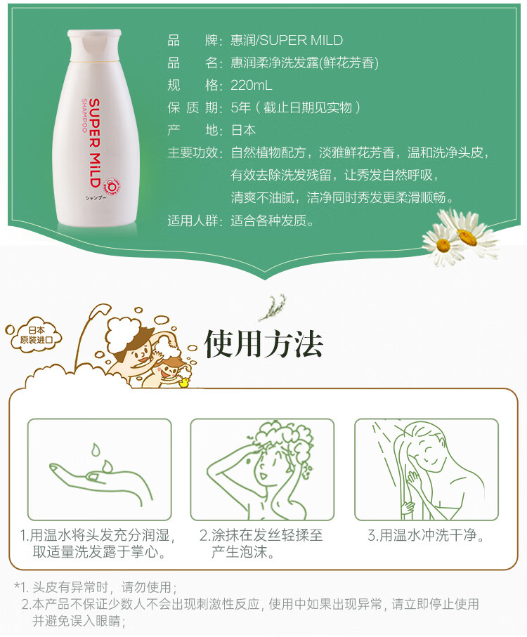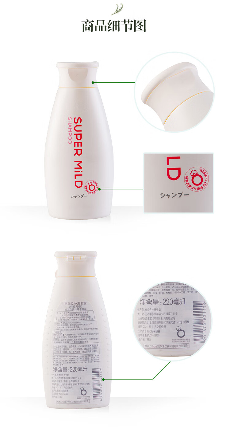 资生堂惠润柔净洗发露小瓶装(鲜花芳香)220ml 白色