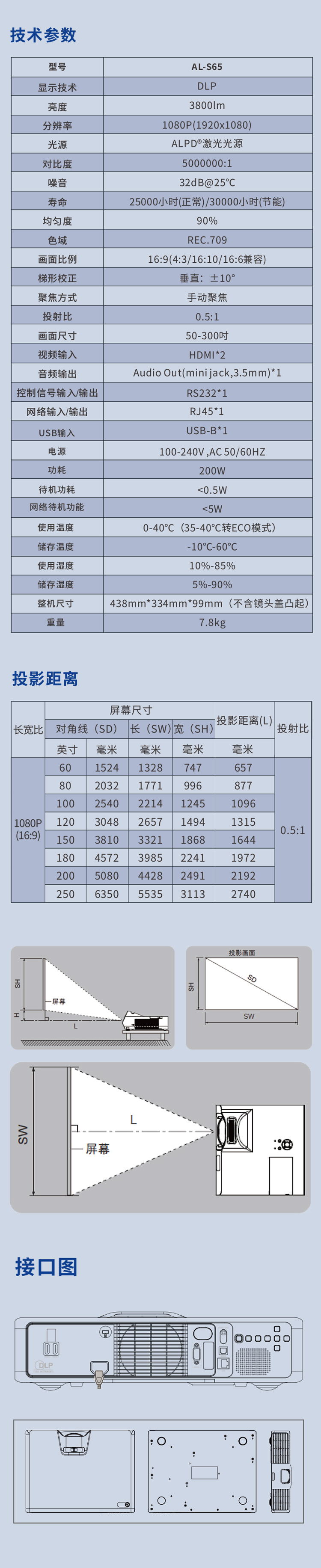 光峰(Appotronics)AL-S65 激光3D短焦投影机 1080P高清 展厅展馆沉浸影像 会 白色