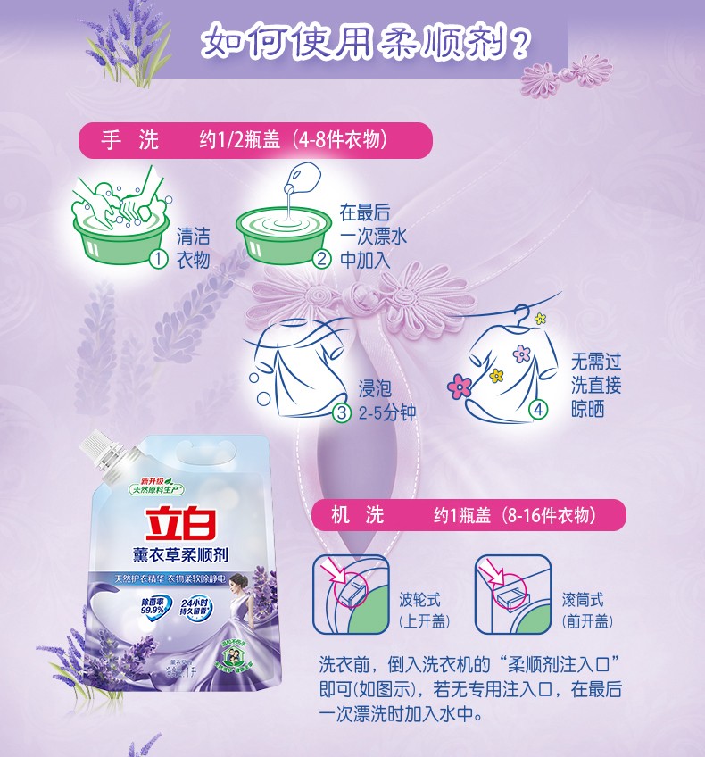 立白薰衣草柔顺剂1000*12(袋) LB20220722YJDF0012 白色
